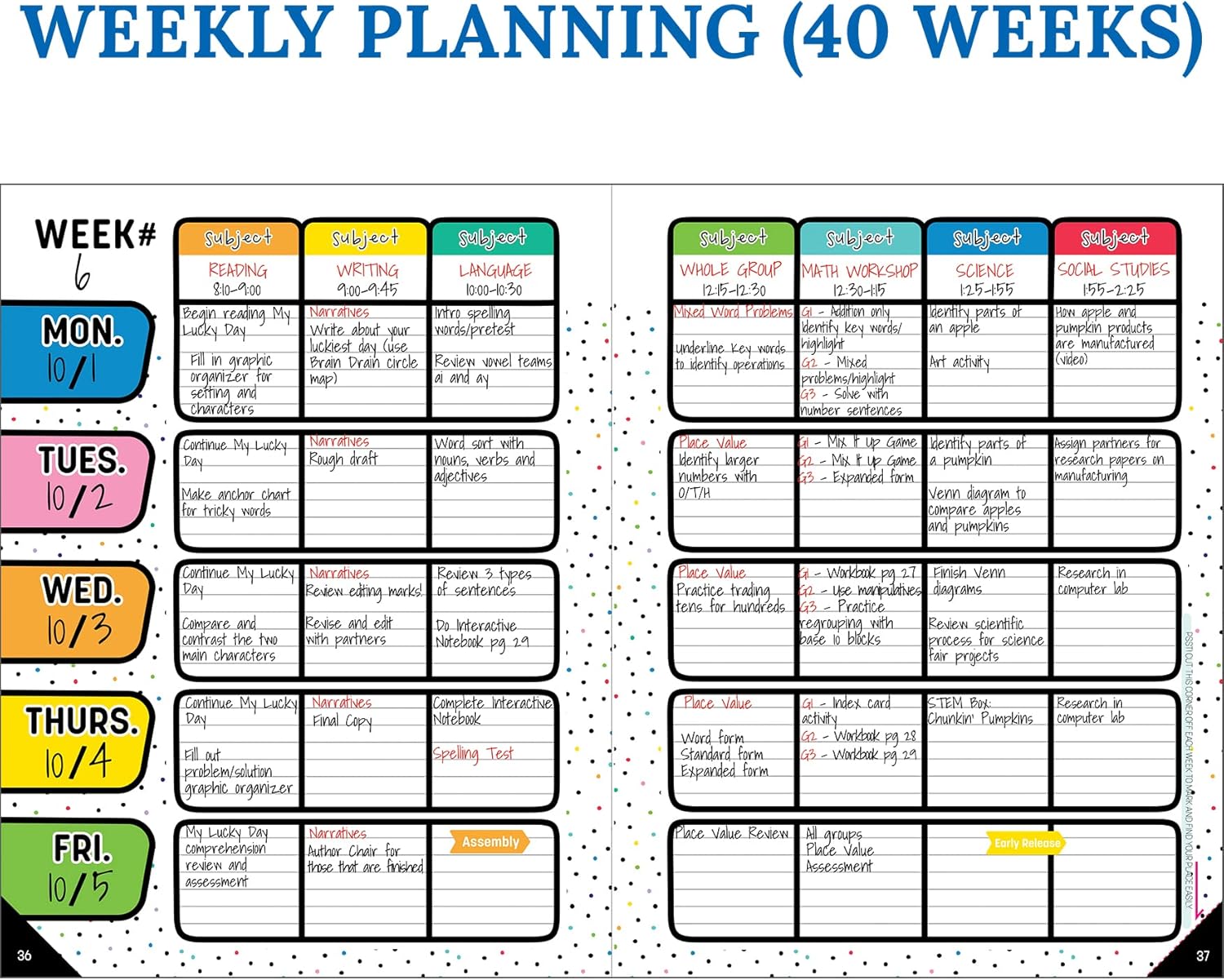 - Teacher Planner School Supplies: Organize lesson plans, tasks, checklist, schedules, grades, and more with Carson Dellosa’s vibrant, rainbow-themed 128-page undated Happy Place Teacher Planner.