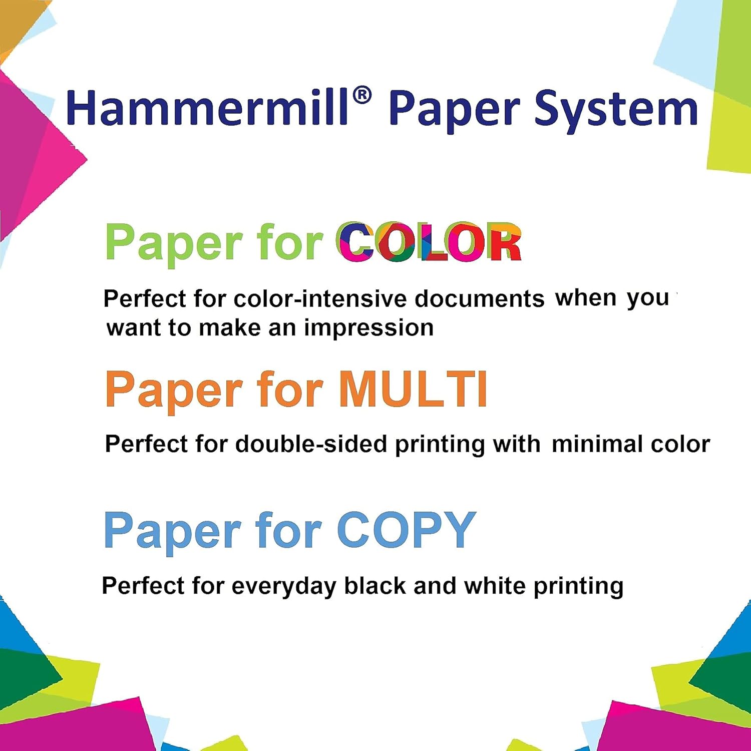 - HAMMERMILL PRINTER PAPER – Hammermill Great White 8.5” x 11” 3-hole punch printer and copying paper works as hard as you do. This dependable, everyday copy paper runs efficiently through all equipment and has a distinct contrast for easy readability.