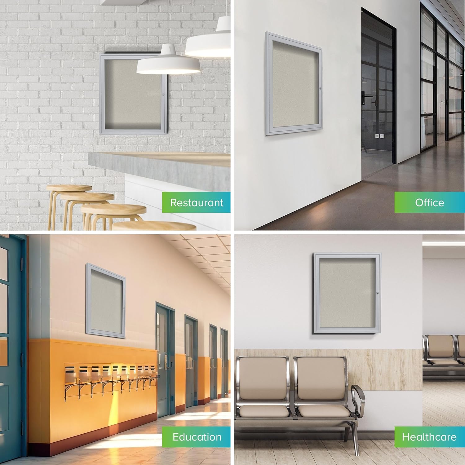 Ghent 36"x24" 1-Door Outdoor Enclosed Vinyl Bulletin Board, Shatter Resistant, with Lock, Satin Aluminum Frame - Ivory (PA13624VX-185), Made in The USA