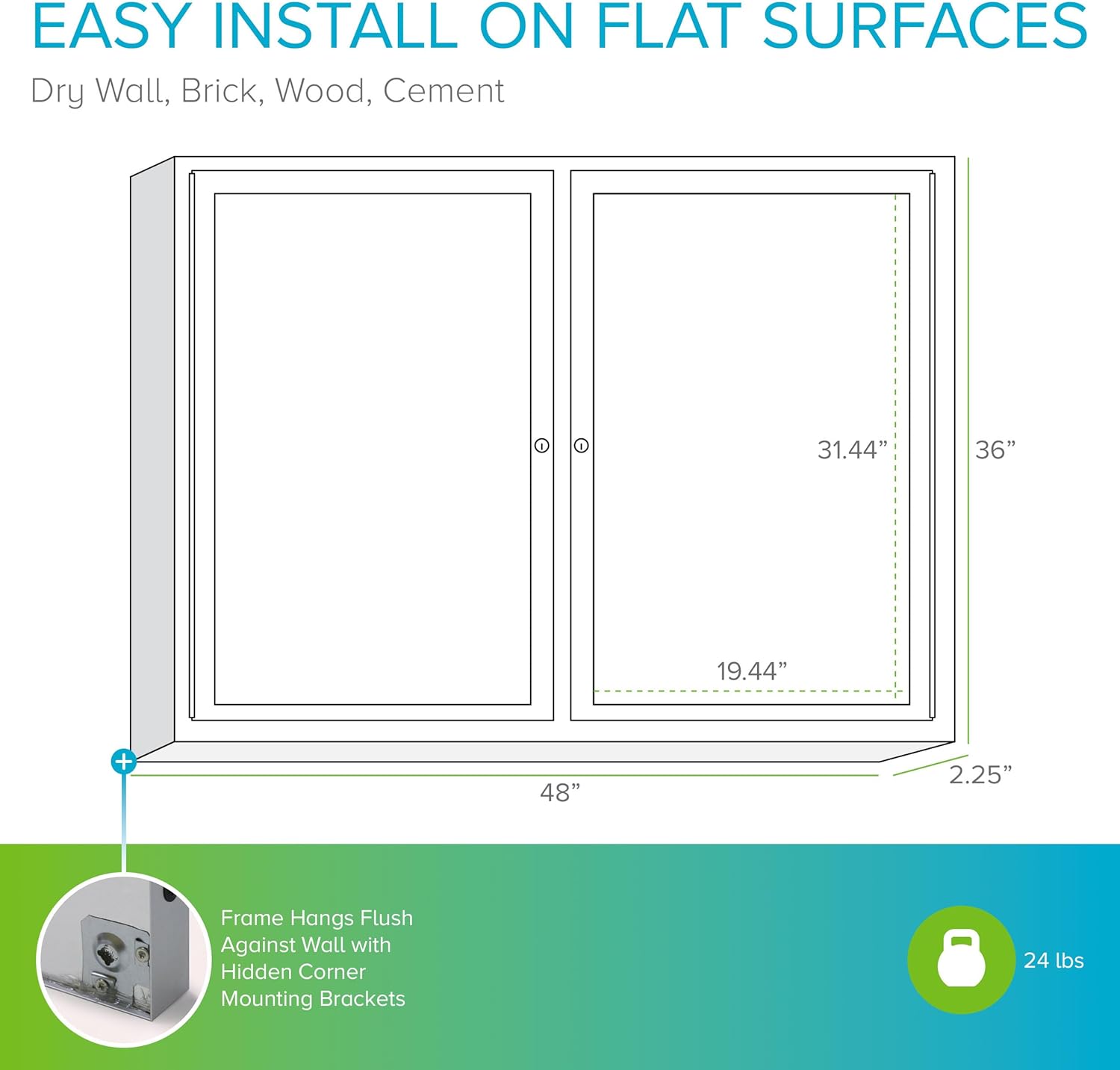 Ghent 36" x 48" 2-Door indoor Enclosed Bulletin Board, Shatter Resistant, with Lock, Satin Aluminum Frame - Natural Cork (PA234K) Made in the USA