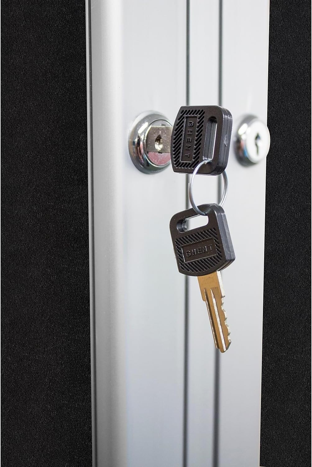 - Doors feature full-length hinges, shatter-resistant acrylic panels, flush mount locks and keys for added security.