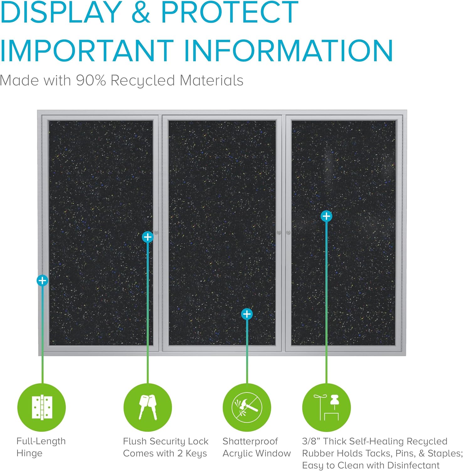 Ghent 48" x 72" 3-Door indoor Enclosed Recycled Rubber Bulletin Board, Shatter Resistant, with Lock, Satin Aluminum Frame,Confetti (PA346TR-CF),Made in the USA
