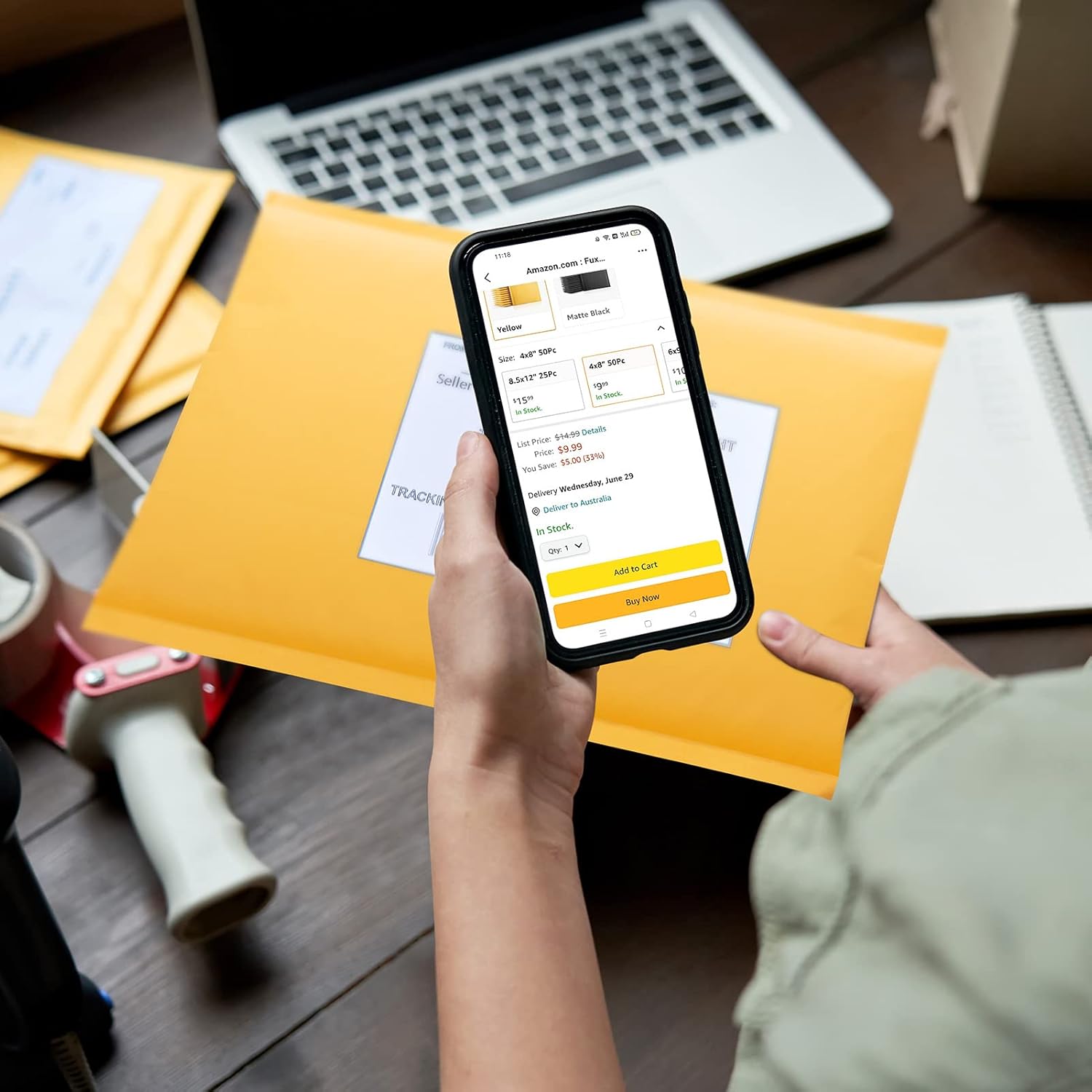 Fuxury Kraft Bubble Mailer 10.5X16 Inch 25 Pack,Strong Adhesion Padded Envelopes,Usable Size 10.5X15", Self Seal Bubble Envelopes,Waterproof Padded Mailers Packaging for Small Business,#5 Yellow