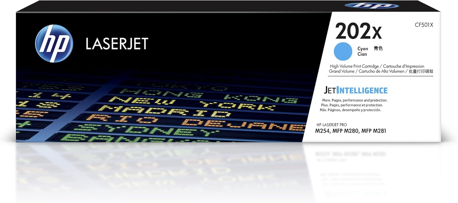 - What's in the box: 1 new Original HP 202X Cyan High-yield Toner Cartridge (CF501X)