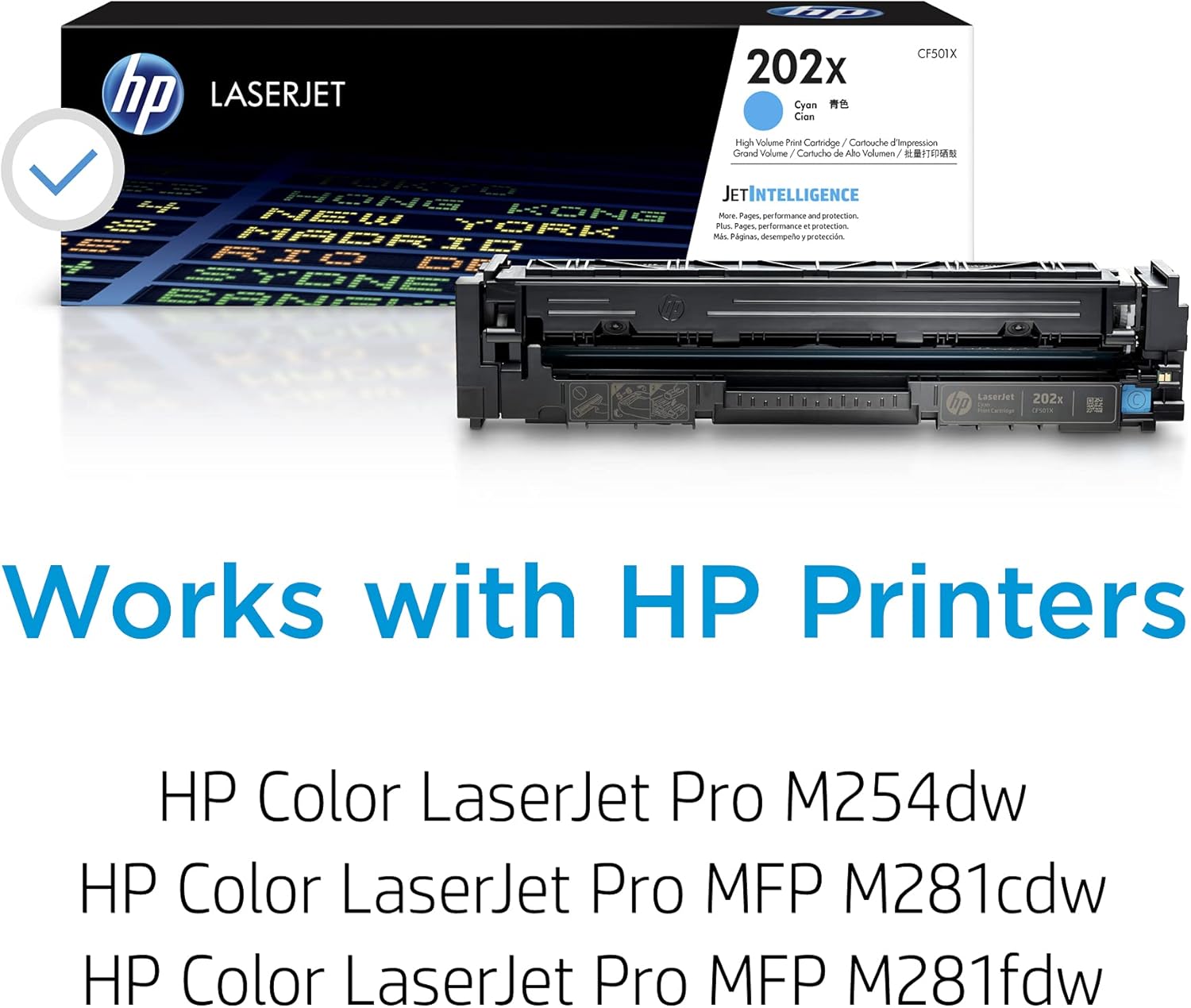 HP 202X Cyan High-yield Toner Cartridge | Works with HP Color LaserJet Pro M254, HP Color LaserJet Pro MFP M281 Series | CF501X
