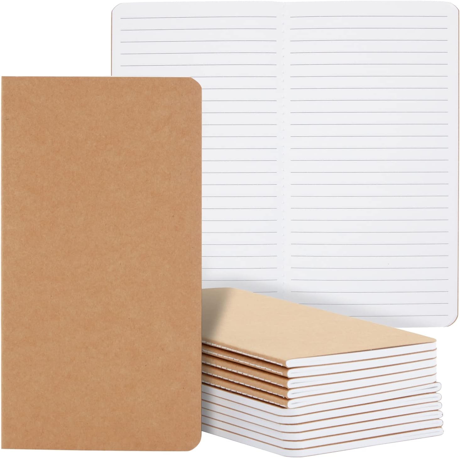 Paper Junkie Bulk Kraft Paper Notebooks - H5 (4.4 x 8.26 In), 12-Pack Soft Cover Kraft Brown - Lined Travel Journal & Creative Writing Notebook