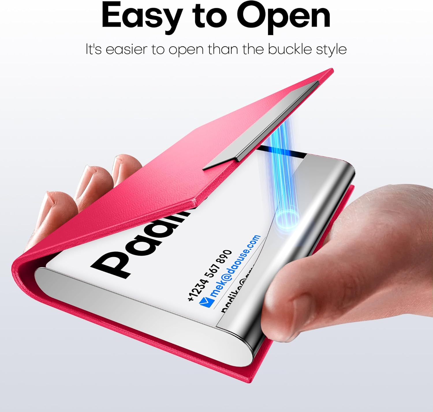 Padike Business Card Holder, Business Card Case Professional PU Leather & Stainless Steel Multi Card Case,Business Card Holder Wallet Credit Card ID Case/Holder for Men & Women. (Rose red)