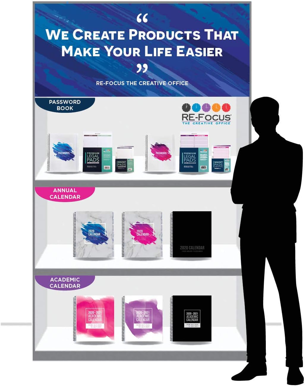 Password Book Keeper, Pink, Alphabetical Tabs, Spiral Bound, Removable Sheets, Journal Organizer Includes Website, Address, Username, Password - 10" x 7.5" by Re-Focus The Creative Office