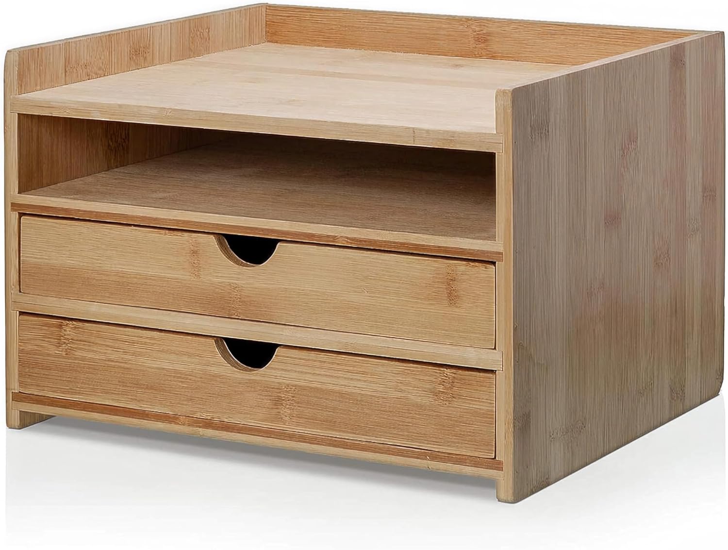 - Three-Tier Drawer Organizer: Designed with two spacious pull-out drawers and a top shelf to hold US letter-sized paper, folders, or office essentials, keeping your workspace neat and efficient