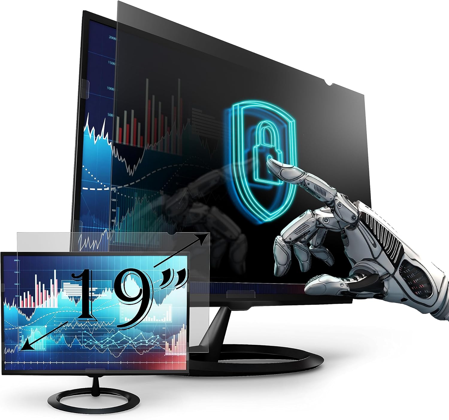 Privacy Screen Filter for 19 inches Desktop Computer Monitor, Screen Protector size is 16.1 inch width x 10.1 inch height. Anti Blue Light and Anti Glare