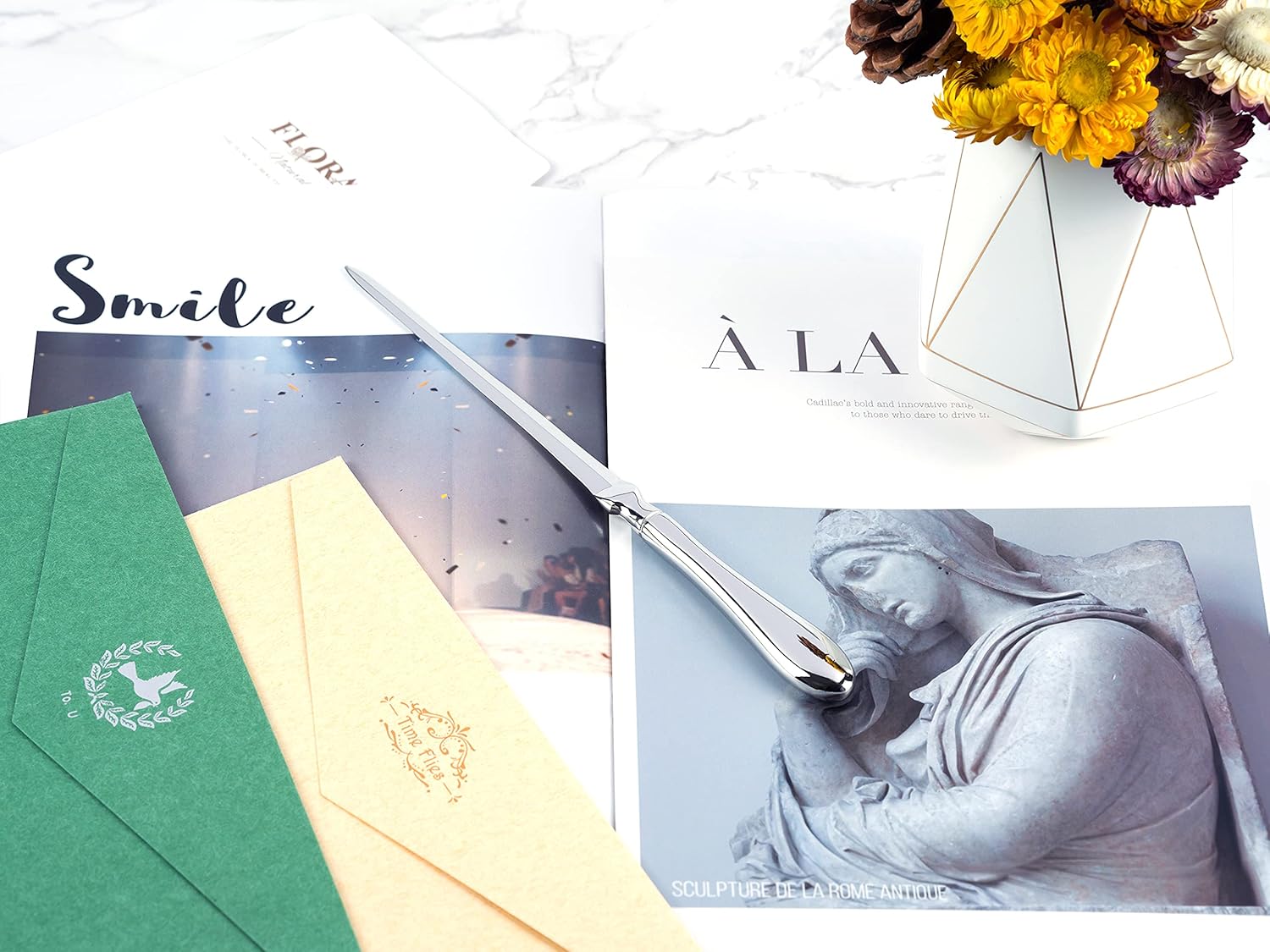 Silvery Letter Opener, Envelope Opener Knife Metal Letter Opening Knife, Paul Revere Paper Cutting Knife, 9 inches (2 Pack)