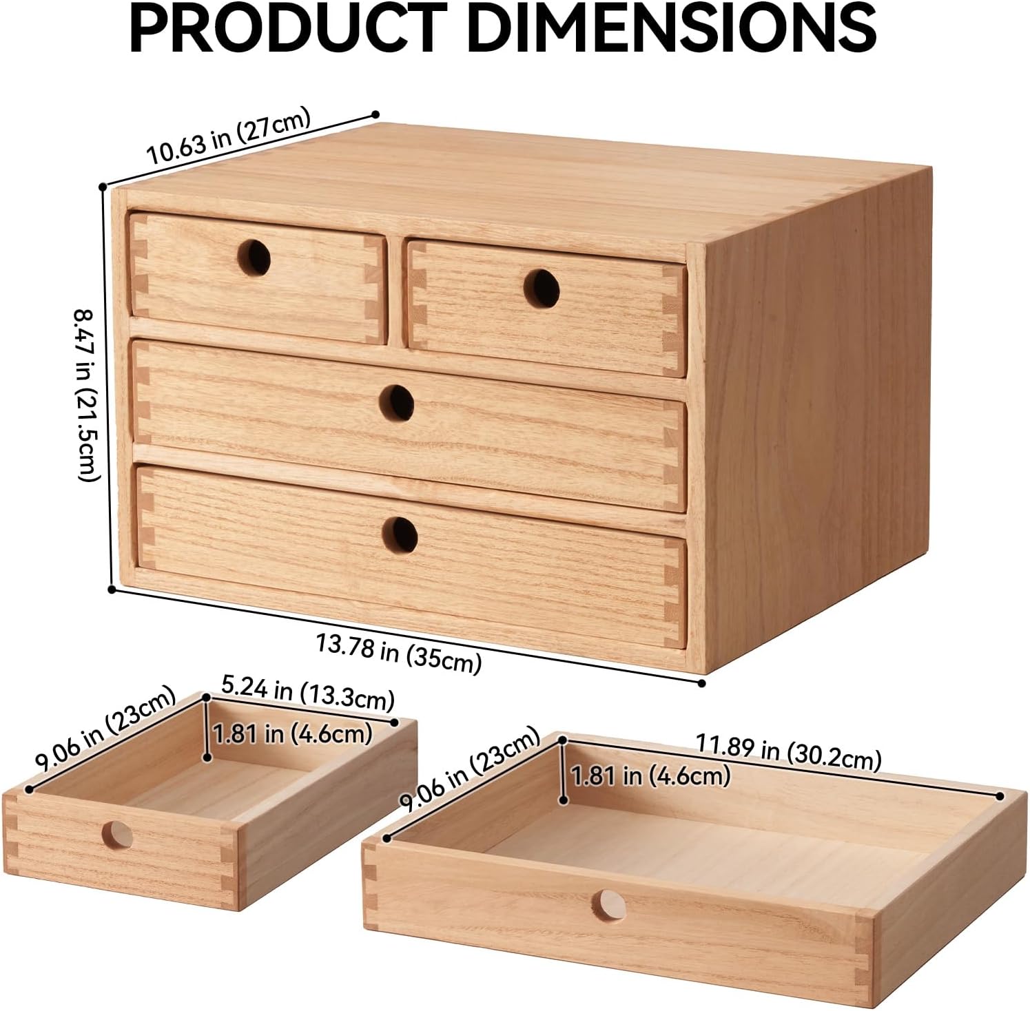 Kirigen Natural Wood Desktop Organizers with Drawers - Home Workspace Office Supplies Wooden Storage Box Shelf Case - Hold Makeup Box (NA, 3-Layer &4 Drawers)
