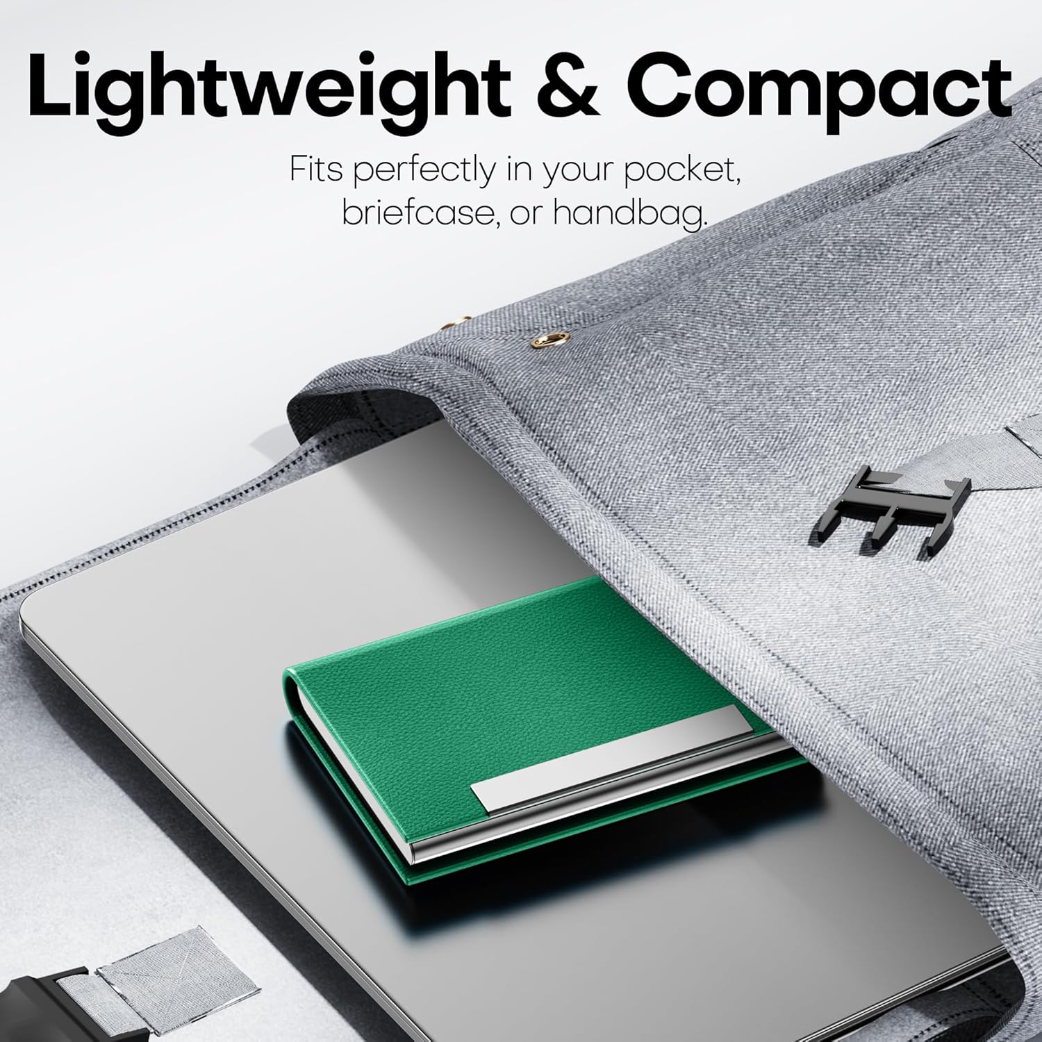 Padike Business Card Holder, Business Card Case Professional PU Leather & Stainless Steel Multi Card Case,Business Card Holder Wallet Credit Card ID Case/Holder for Men & Women. (U-Green)