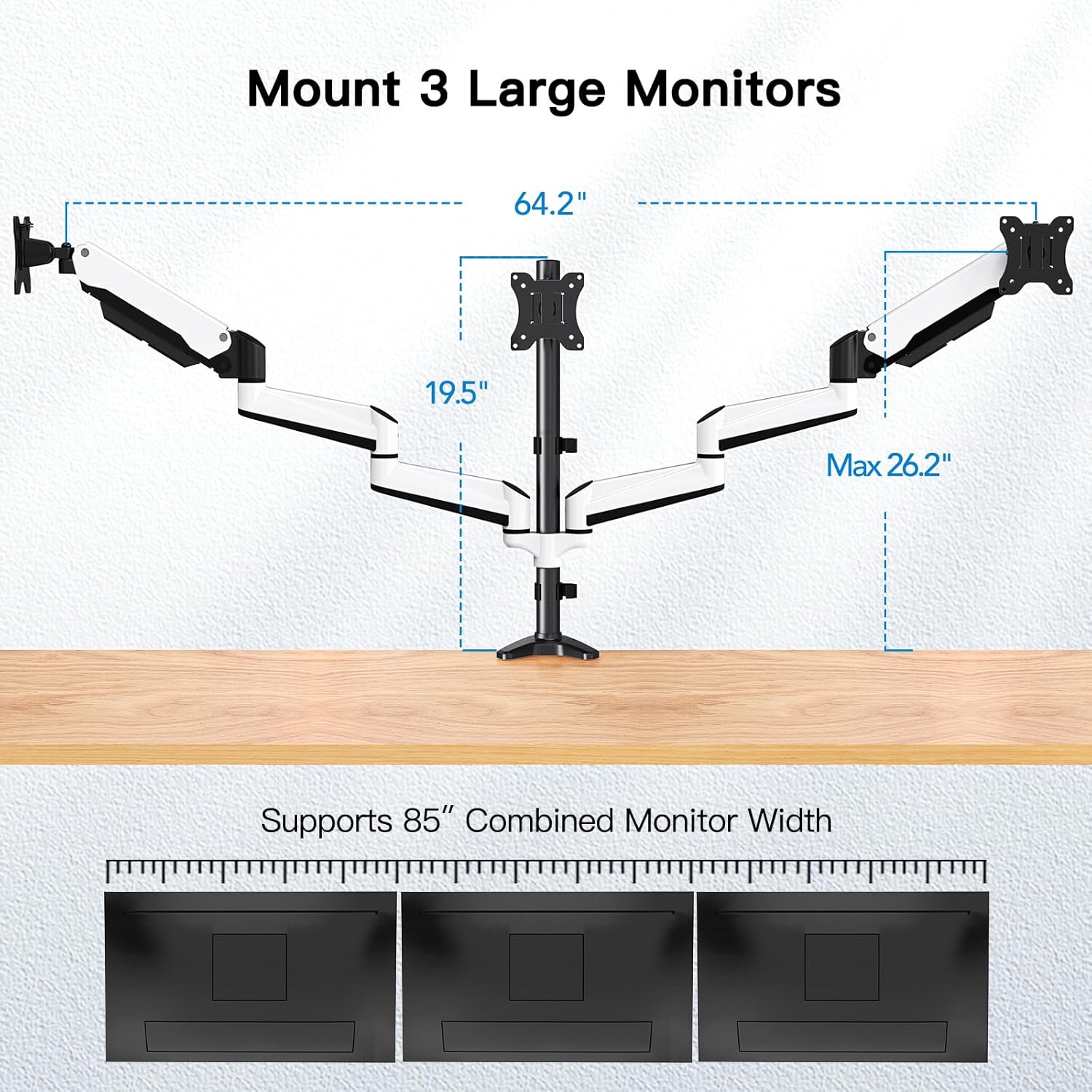 - Increase Comfort &Efficiency - Complete your work in 3 monitors at the same times with comfortable view position. Now you can enhance your work efficiency in comfortable work posture.