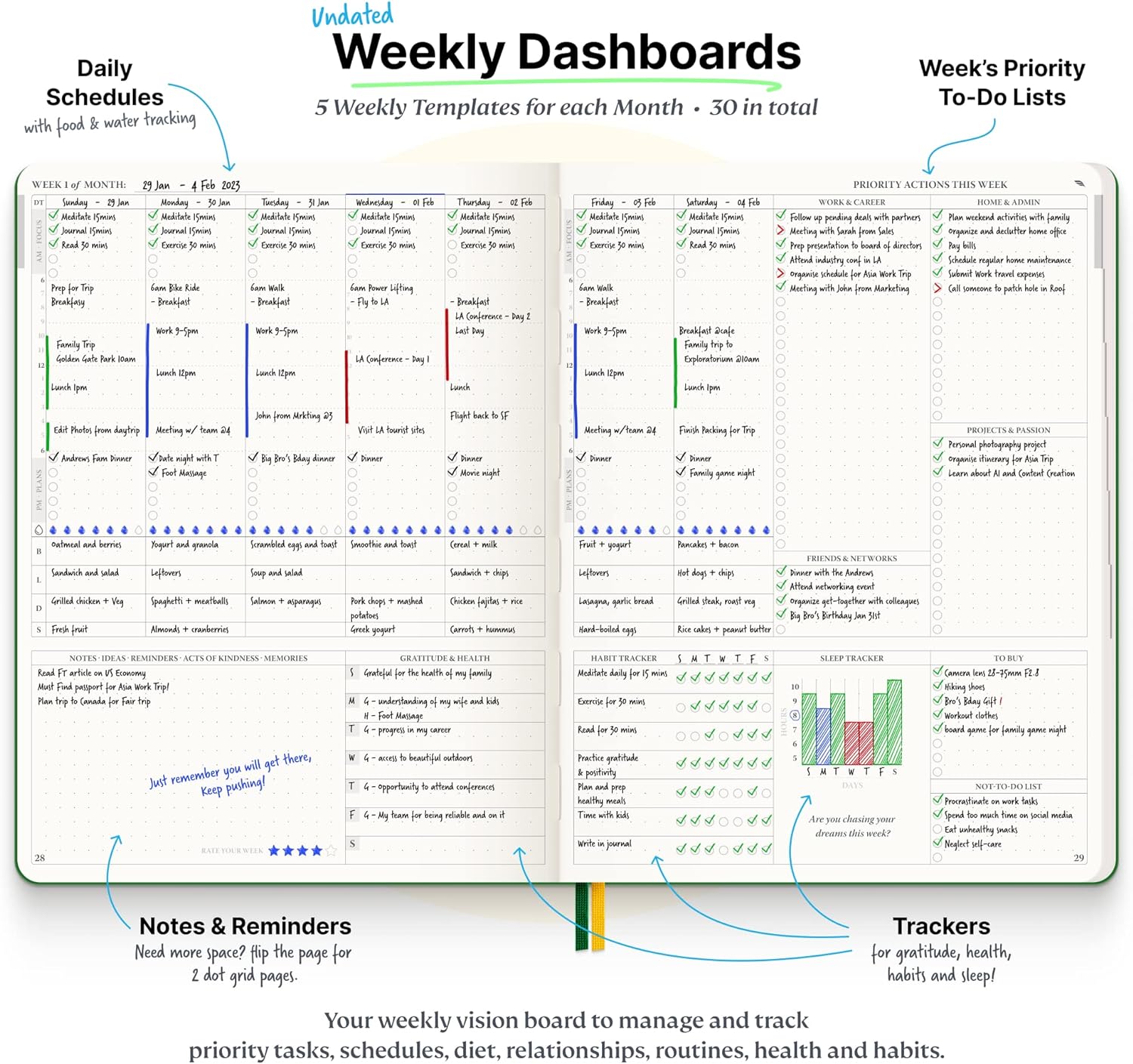 - Smash Your Goals & Prioritize Wellness: 5 Roles & Goals templates for purposeful goal setting. Reading, Bucket lists, & Self Care journal. AM/PM Routines, habit, nutrition, fitness, and health trackers included. Perfect planners 2024-2025 for women and men.