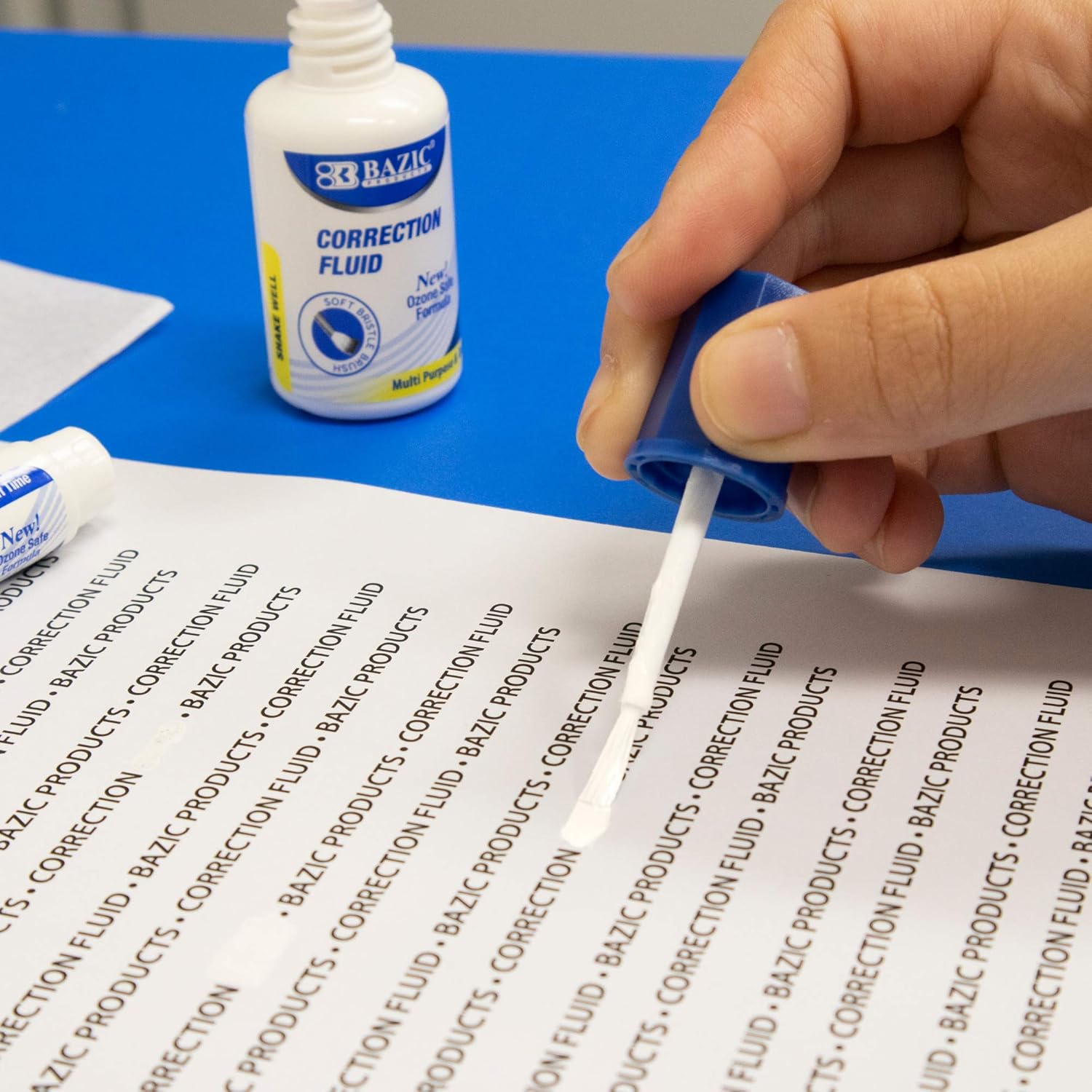 BAZIC Correction Fluid (0.7 oz / 20 ml), Soft Bristle Brush Applicator, Instant Corrections Pen White Out Wipe Out Liquid (2/Pack), 1-Pack