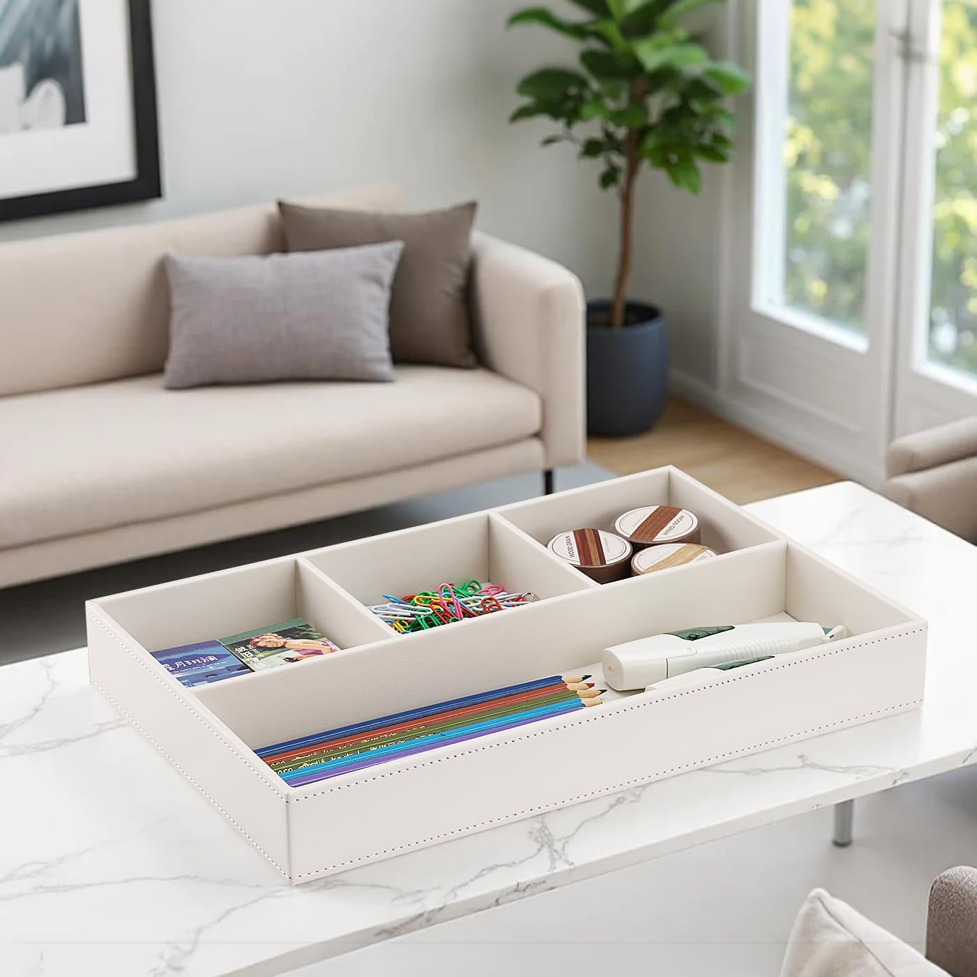 - PROFESSIONAL ORGANIZER TRAY: 4 divided compartments to organize your different desk accessories like pens, paper clips, scissors, note pads, and more, keep your desktop organized.