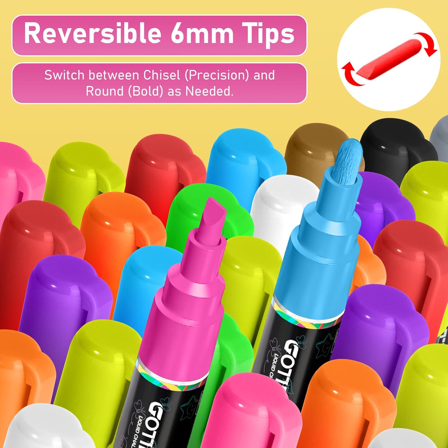 - Safe & Kid Friendly:Gotideal chalkboard markers are designed with odorless, non-toxic ink, these dust-free liquid chalk markers erasable empower kids to create vibrant window art during family party or classroom activities.
