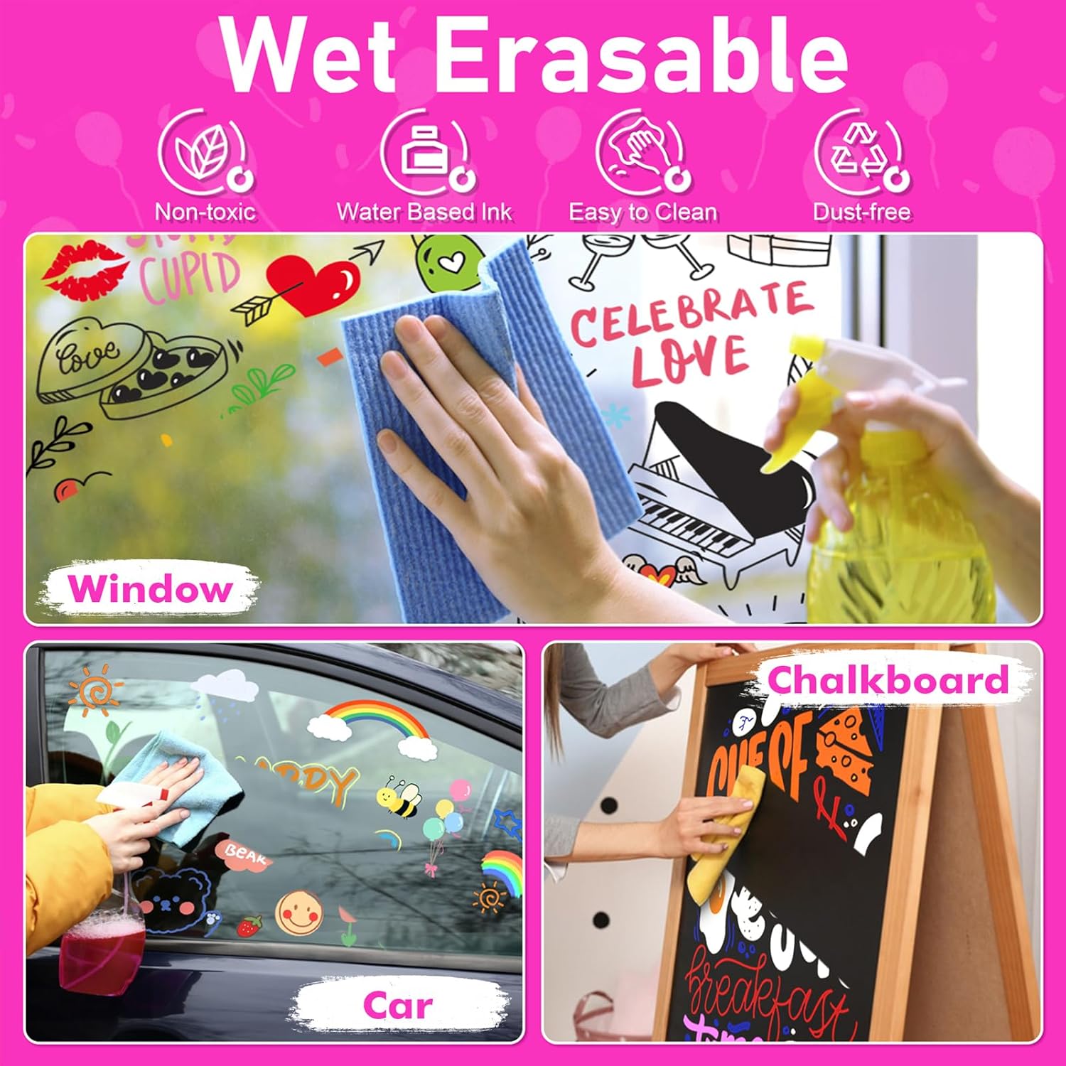 - Easy to Clean: Erase effortlessly with a damp cloth on non-porous surfaces like windows or mirrors. Note: this liquid chalk markers may stain porous surfaces,test a small area first for best results.