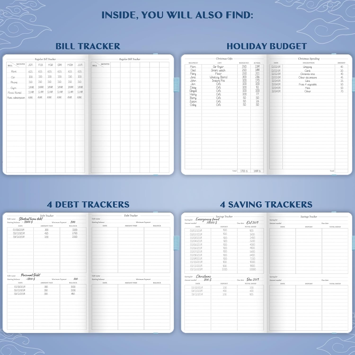 - MASTER EFFICIENT BUDGETING, SAVING & DEBT MANAGEMENT – At the back of the budget book, you will find 8 savings and 12 debt trackers, a holiday budget, and a regular bill tracker.