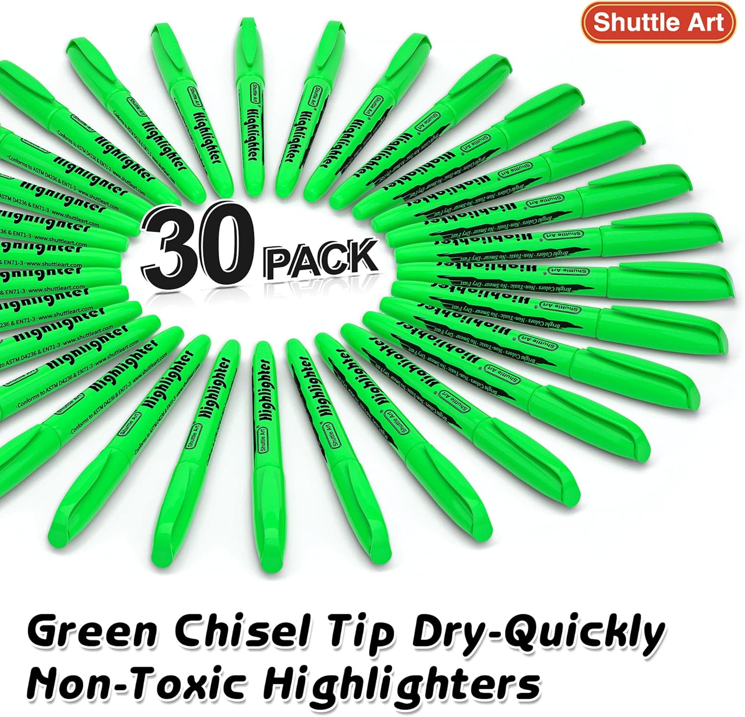 - Non-Toxic & Non Smear, Safe to use for any student, office worker and just about anyone (kids, adults etc.) Shuttle Art highlighters conform to ASTM-D4236.