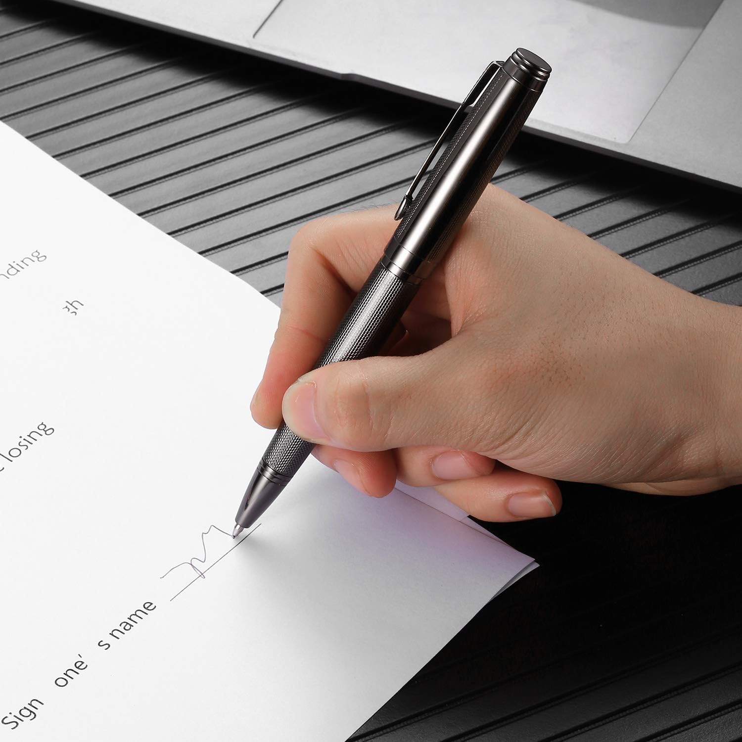 - ★ATTRACTIVE APPEARANCE––– Glossy elegant metallic lacquer finish accented by metallic trims makes a good sense of view and touch. Feeling substantial and premium when writing. Long life time, the pen still retains luster and there is no any signs of wear.