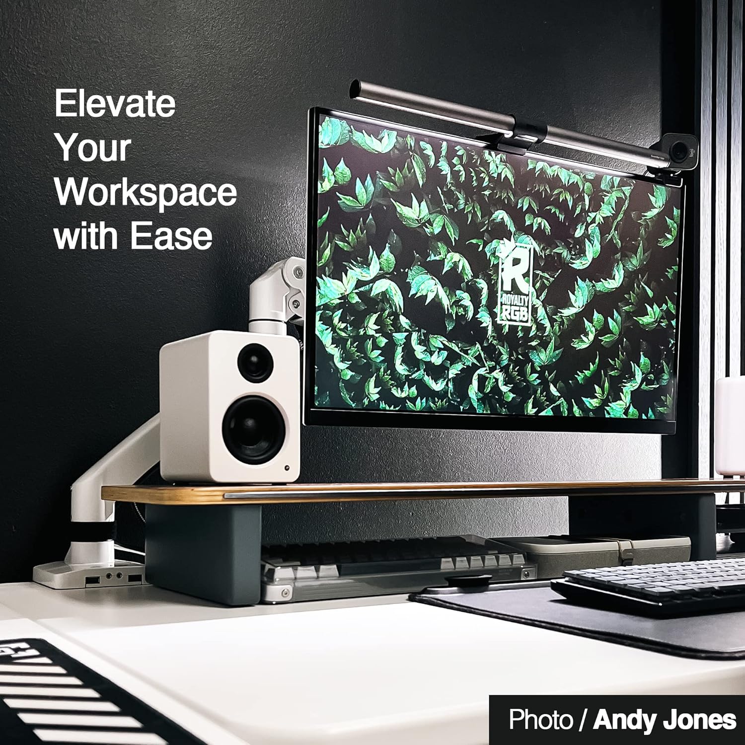 - SAVE VALUABLE SPACE - Heavy-duty metal base only take up 4.7" x 4.3" (120mm x 110mm) desk surface. The c-clamp and grommet mounting options support up to 3.3" (85mm) desk thick.