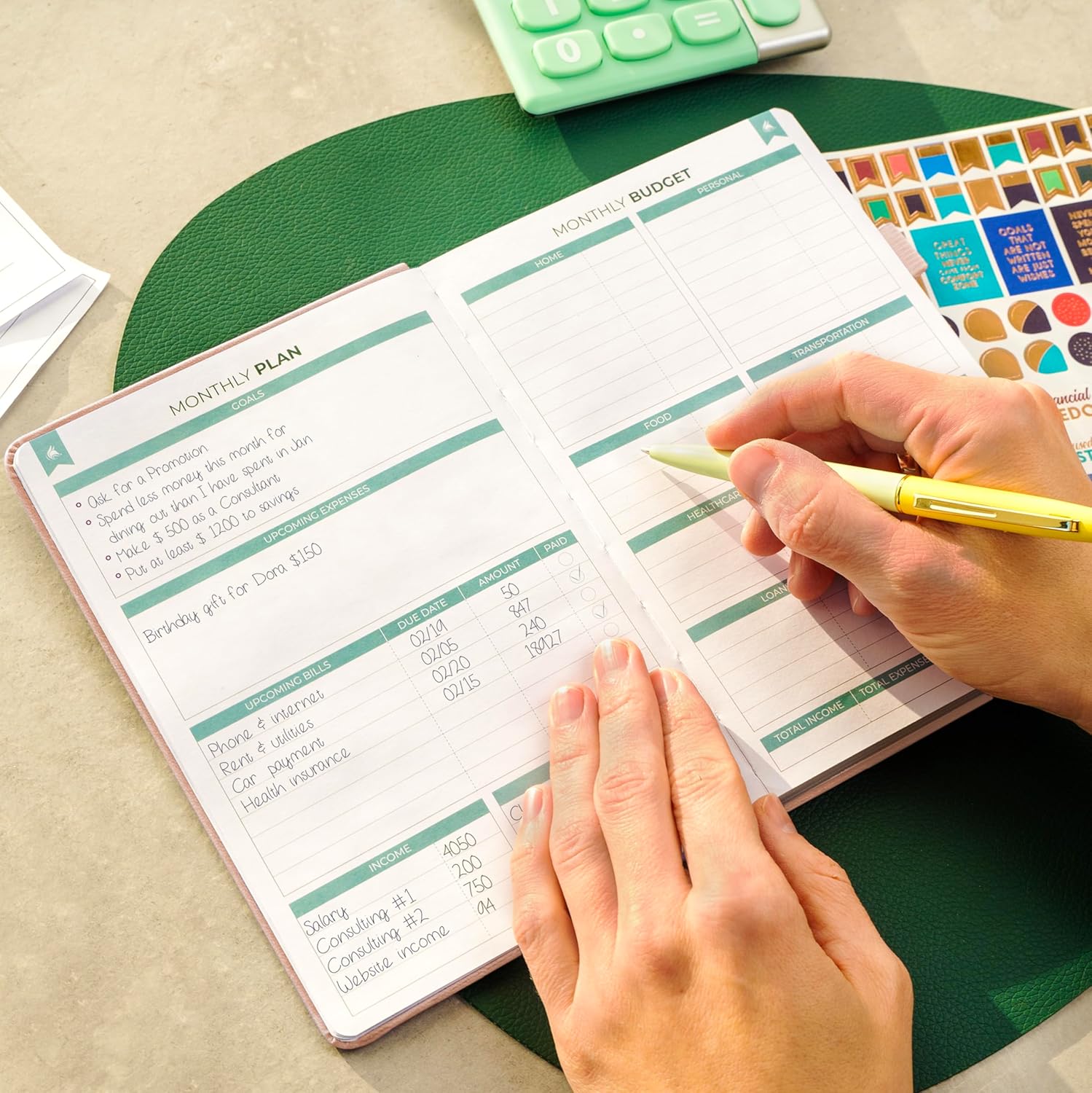 - PLAN & MONITOR YOUR FINANCES – Each month, make a monthly budget, set goals, plan bills and purchases, and manage monthly payments. Use a dedicated expense tracker to track your day-to-day spending. There are also 2 dotted pages per month for notes.