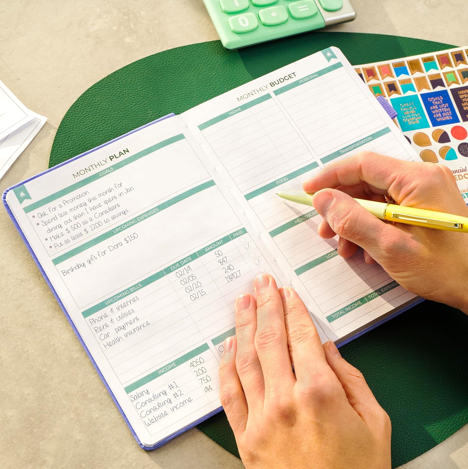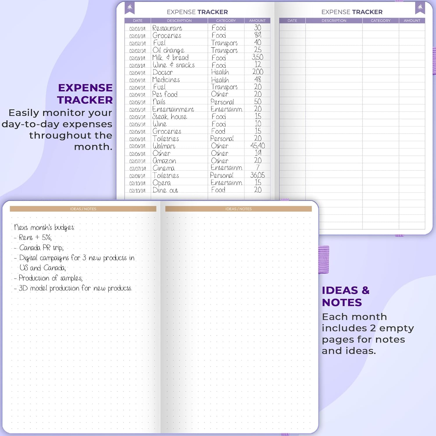 - PLAN & MONITOR YOUR FINANCES – Each month, make a monthly budget, set goals, plan bills and purchases, and manage monthly payments. Use a dedicated expense tracker to track your day-to-day spending. There are also 2 dotted pages per month for notes.