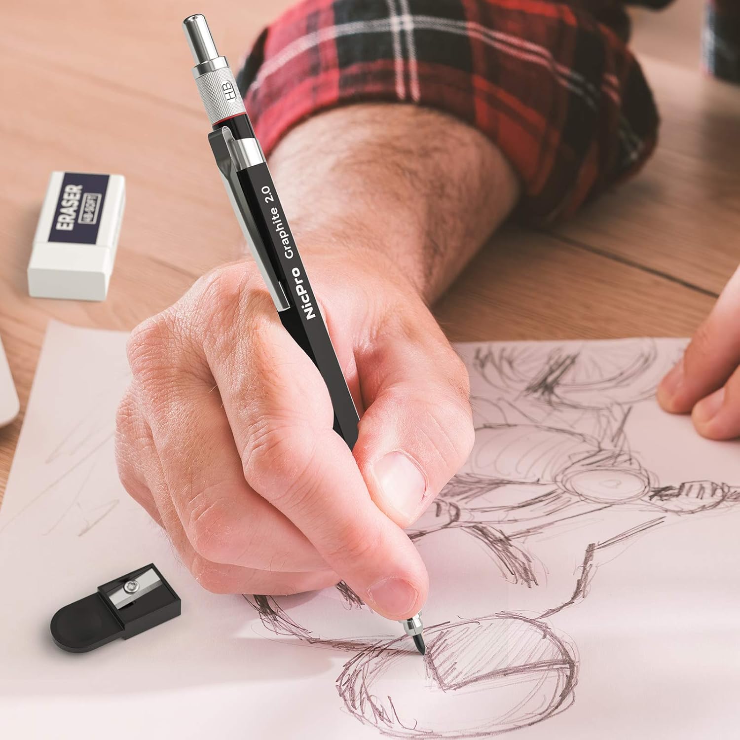 - Metal Non-Slip Grip: The black mechanical sketching pencil with metal non-slip grip, is a perfect construction pencils with the excellent weight balance