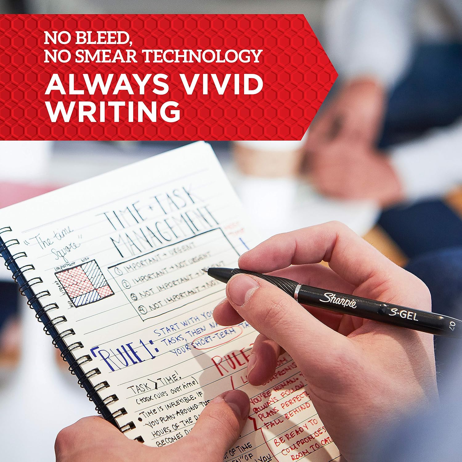 - Gel pen with no smear, no bleed technology