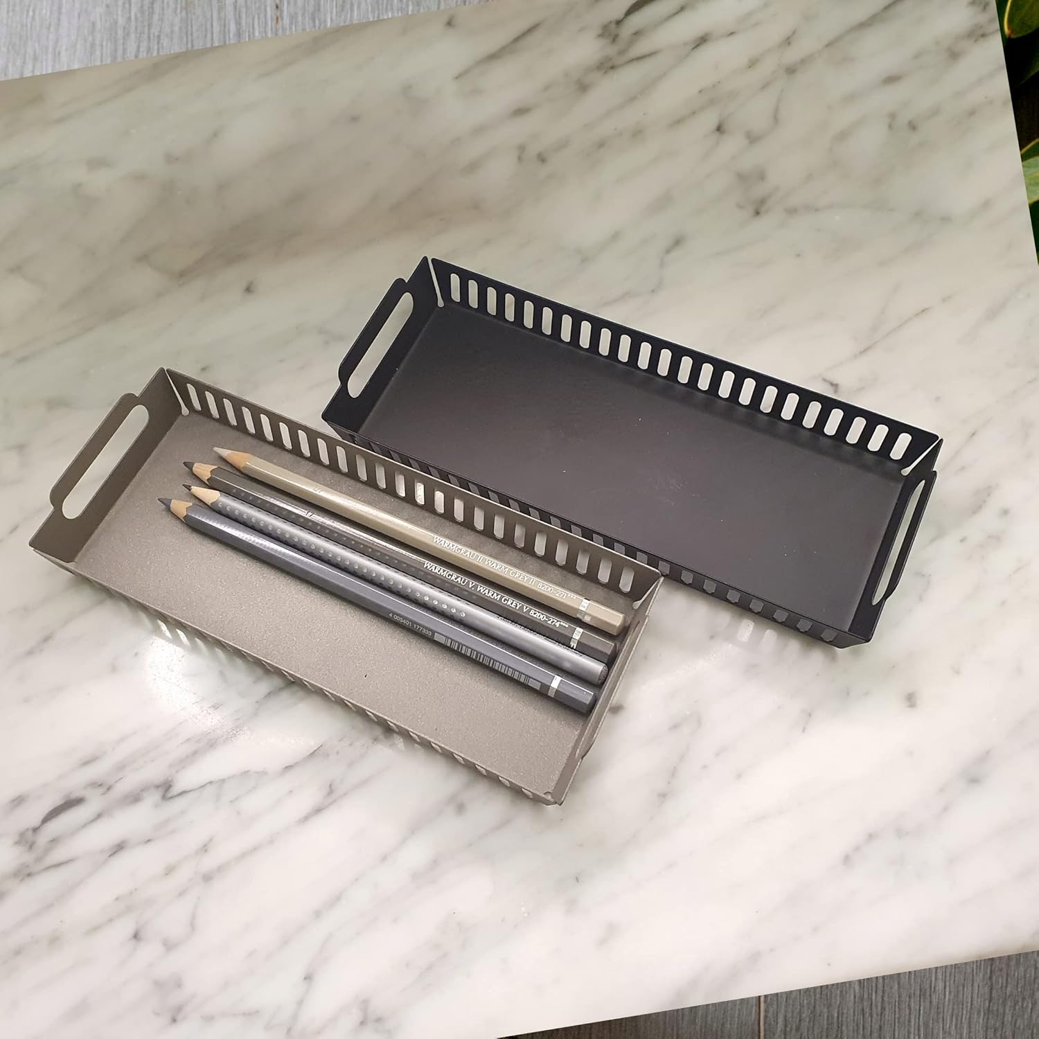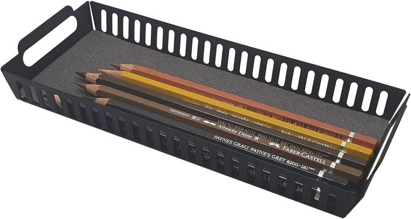 Metal Pen Pencil Tray Holder Office Desk Drawer Organizer Small Vanity Accessory Storage (Black)