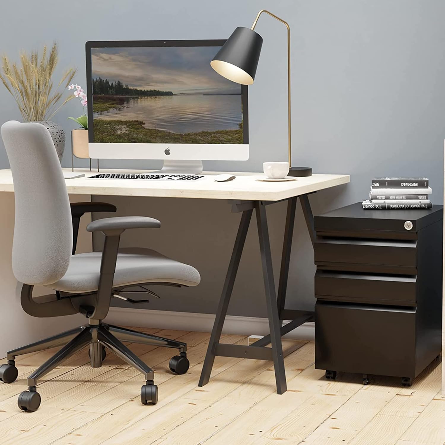 - 【Add More Mobility】:This mobile file cabinet arrives with five casters, including two front casters with braking function and one center caster to prevent tipping.