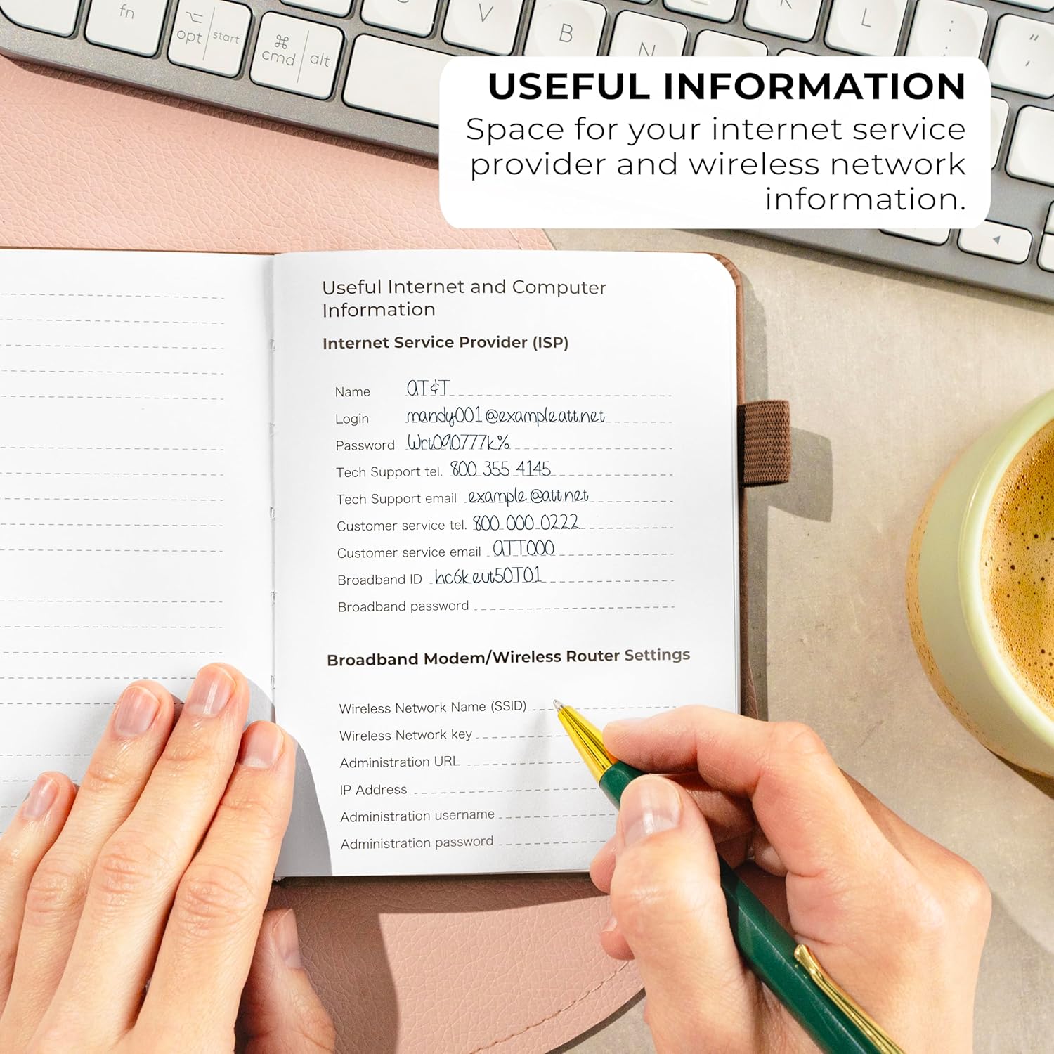 - ELEGANT, SMART, PRACTICAL & SECURE PASSWORD ORGANIZATION - This password keeper book has been designed to be anonymous without an obvious title on the cover. For added security there is space to write hints instead of the password itself.