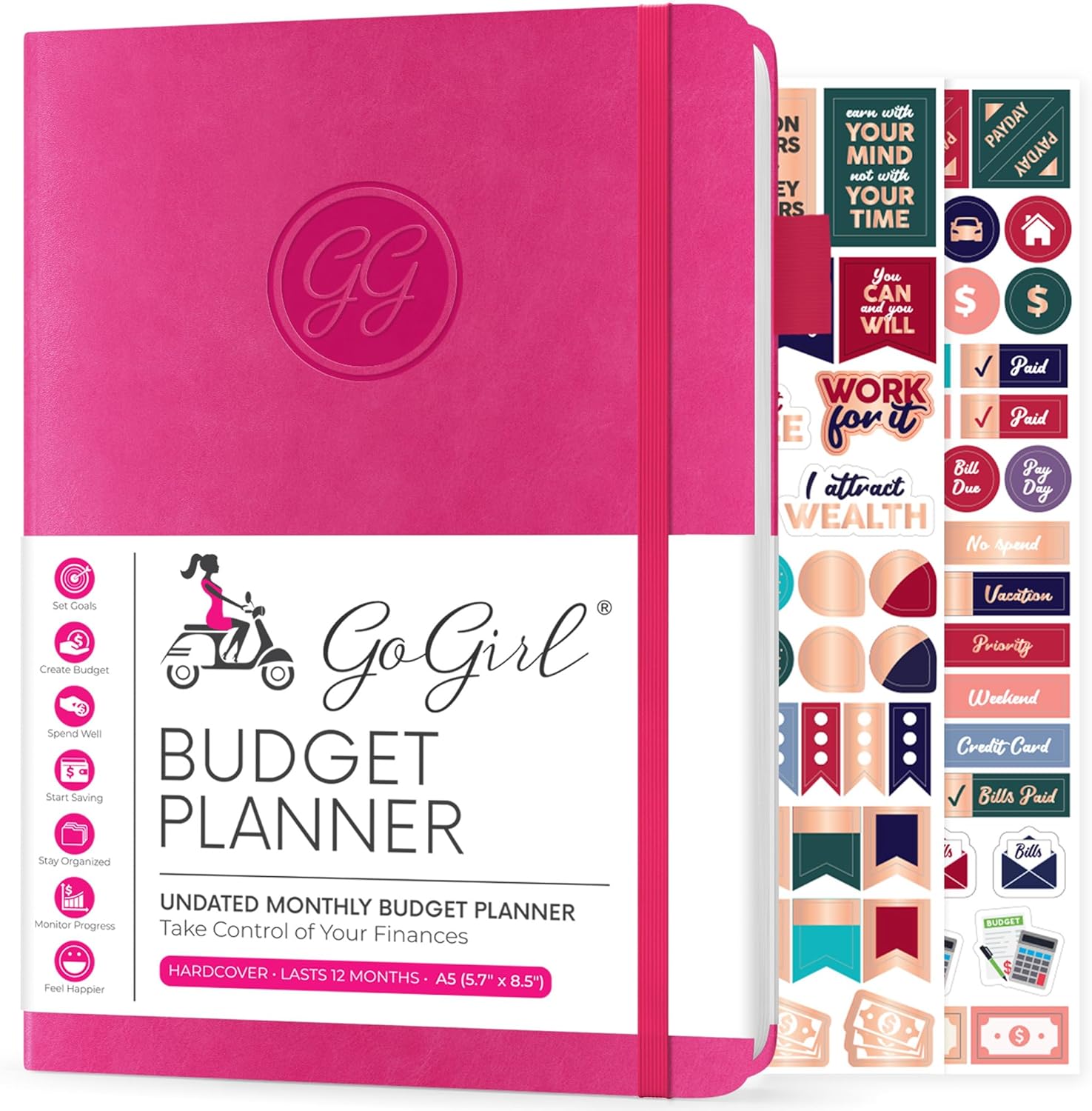 GoGirl Budget Planner – Monthly Financial Planner Organizer Budget Book. Expense Tracker Notebook Journal to Control Money, A5 (Hot Pink)