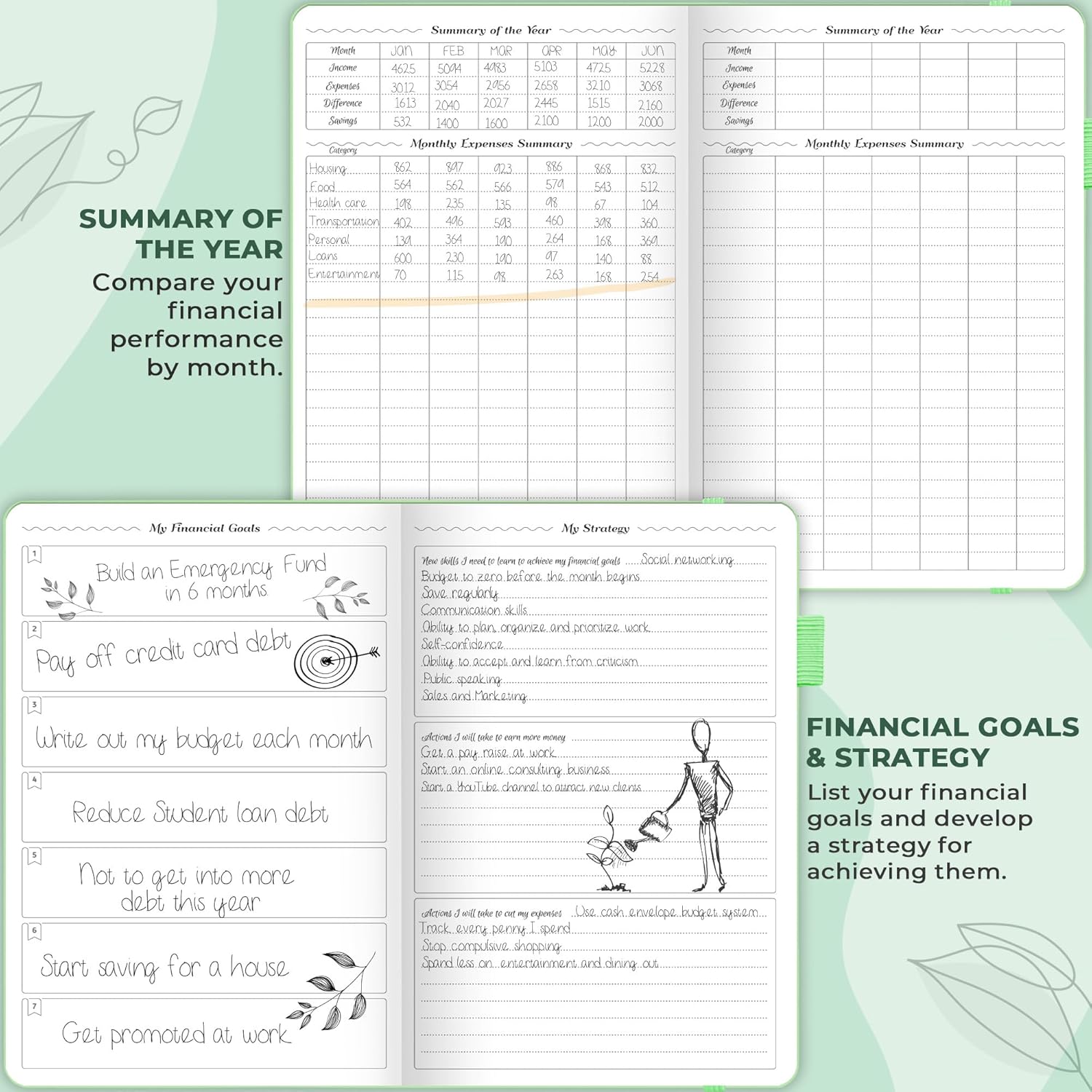 - PERSONAL FINANCE & BUDGETING MADE EASY - Each month, set monthly goals, add reminders of upcoming purchases, bills and payments, make a monthly budget, and track your spending using a dedicated expense tracker.