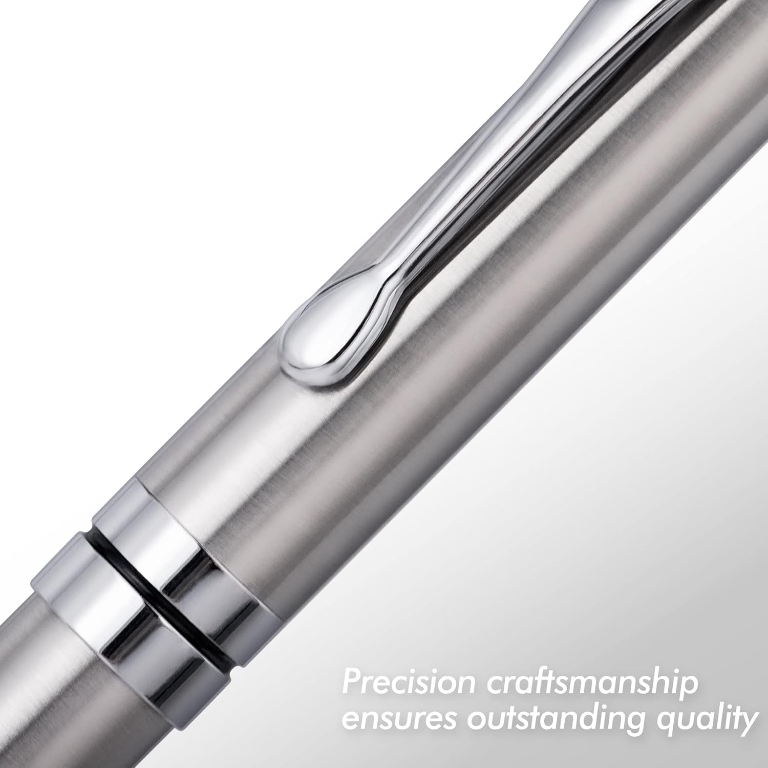 BEILUNER Silver Ballpoint Pens, Stainless Steel Body, Smooth Writing Experience, Dishwasher Safe, Gift Box with Extra Refill