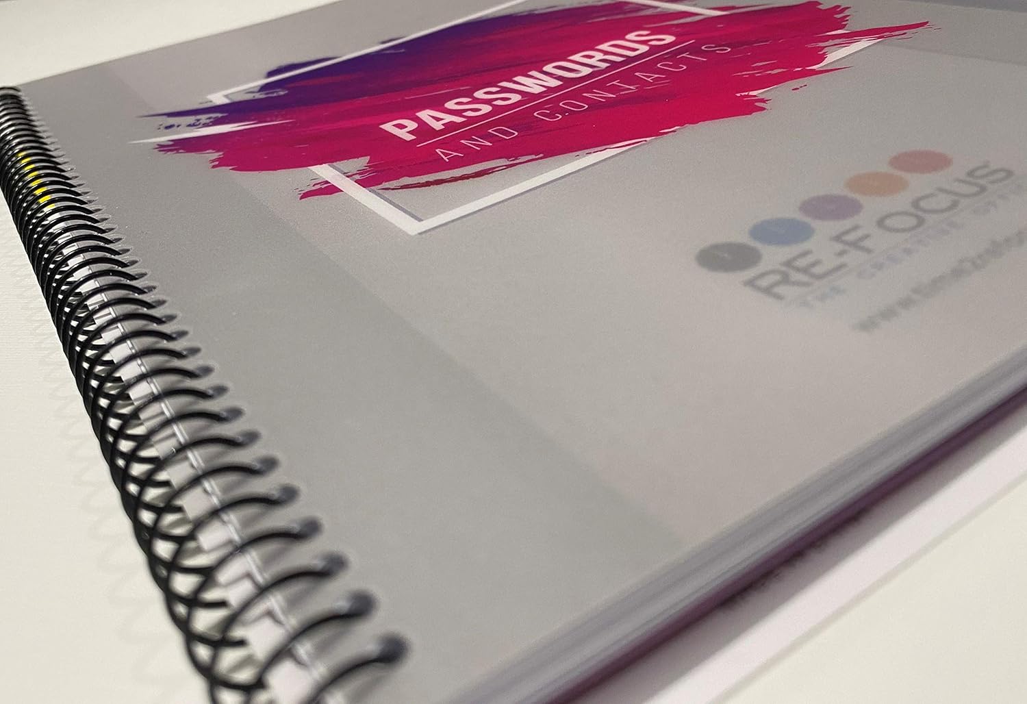 RE-FOCUS Password Book with Alphabetical Tabs 10"x7.5" Spiral Bound Credentials keeper Saves All Internet Login Details (Pink)