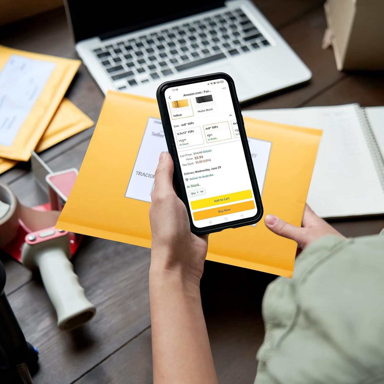 - 【Simple Peel & Seal 】Simply peel and fold over to seal each package safely and securely.Kraft padded bubble mailers are equipped with a strong self-sealing adhesive strip that cannot be easily torn apart and tamper-resistant.Moreover,the smooth surface of the shipping envelopes can be written, labelled and stamped.