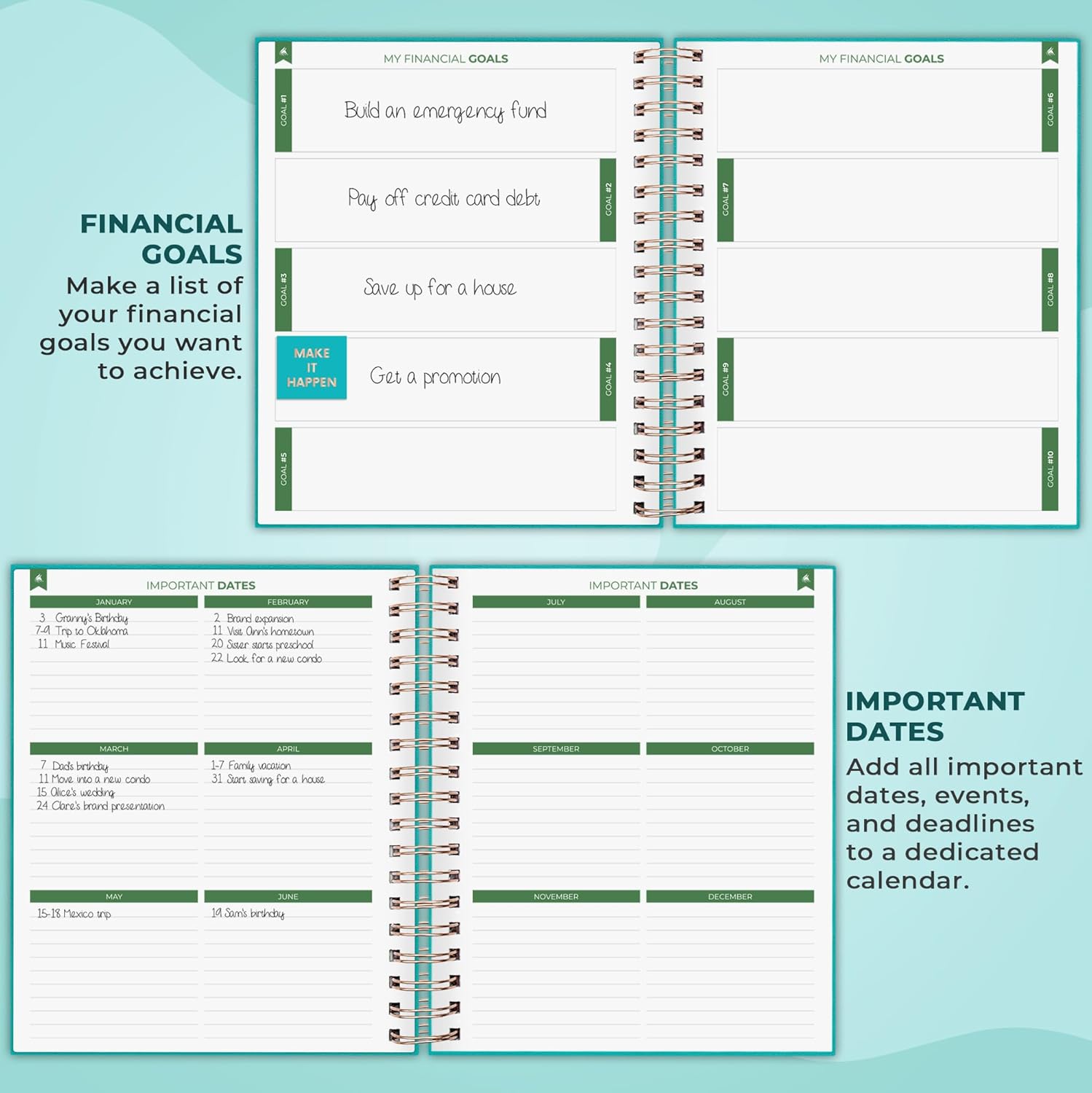 - FIND THE BEST WAY TO ACHIEVE YOUR FINANCIAL GOALS –The finance planner guides you in developing a solid financial strategy, breaking down ambitious goals into manageable monthly tasks, and reflecting on your monthly progress to keep getting better.