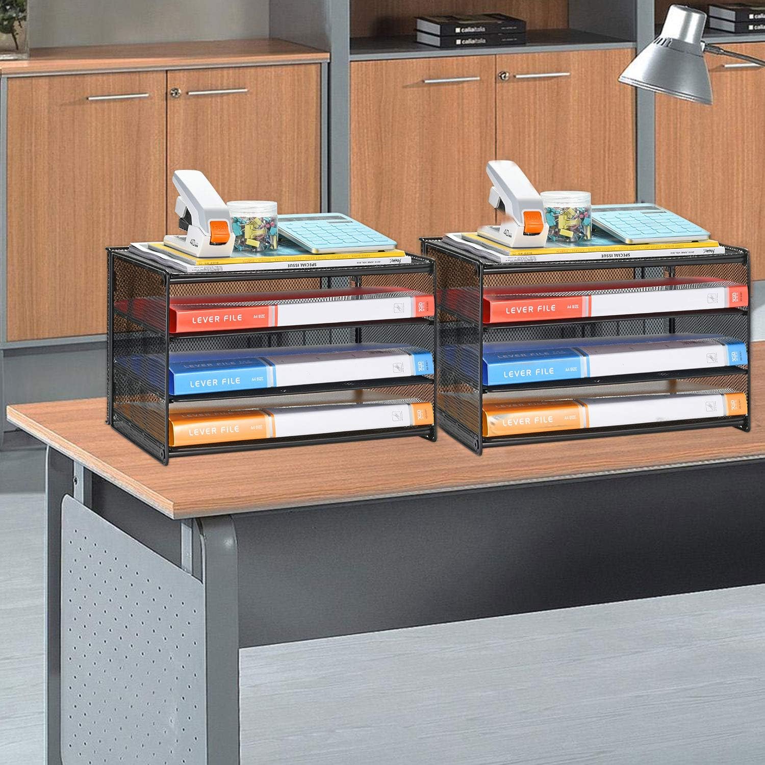 Samstar 2 Pack Paper Letter Tray, 3-Tier Desk File Organizer Paper Sorter Letter Shelf Rack, Mesh Made,Black