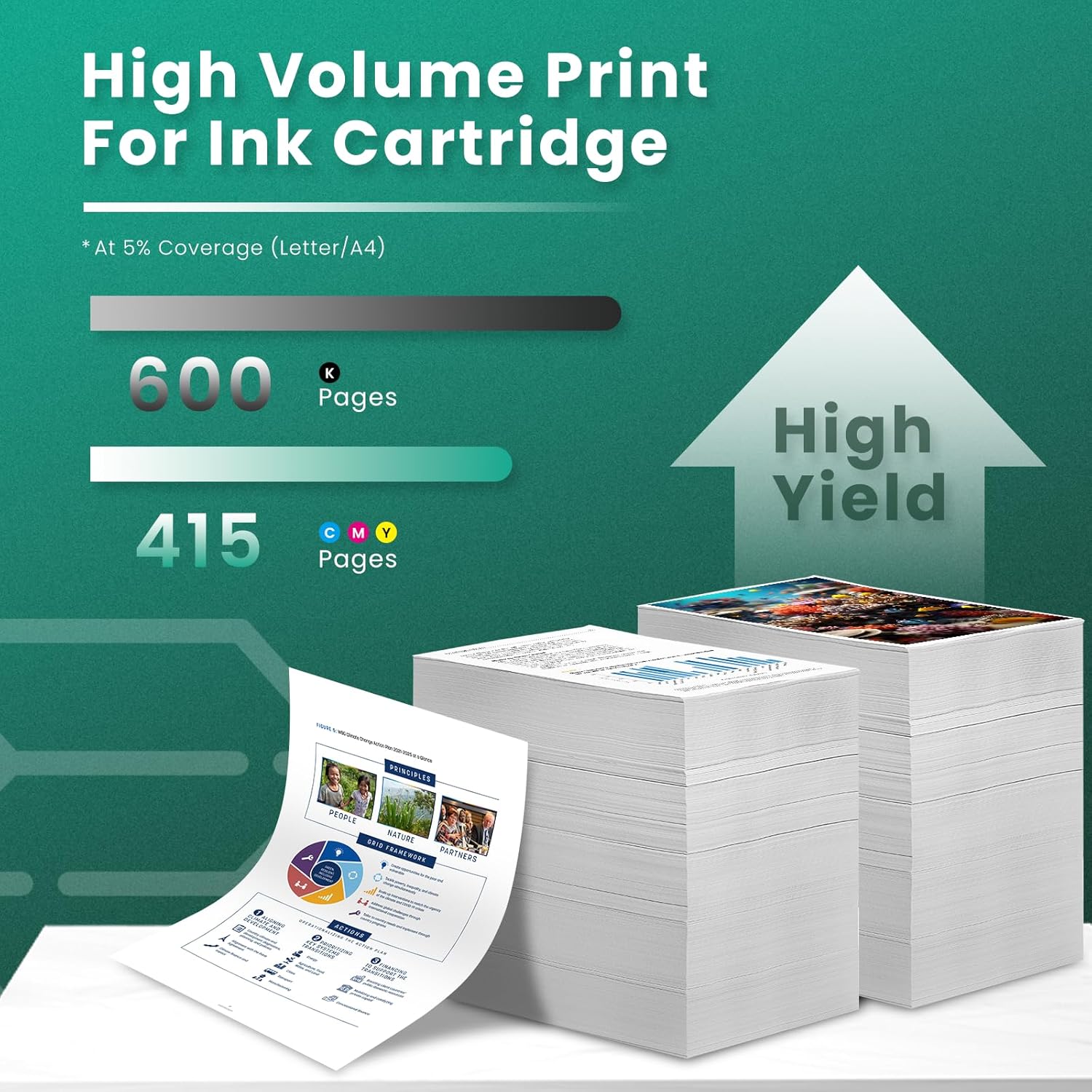 - High Page Yield: Up to 600 pages per GREENBOX for 64xl for HP 64xl black ink cartridge high yield & 415 pages per GREENBOX for 64xl color ink cartridge at 5% coverage (A4 paper)