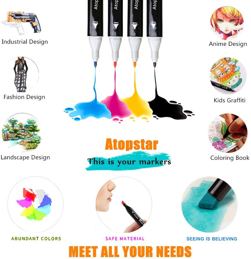- 【COLOR-CPDED CAPS & BONUS】Artist markers color-coded caps allow for ease in organization and to identify colors quickly. you'll never waste time searching for the perfect color. Ergonomic design makes working with these markers easy for a long time. Equipped with a beautiful form-fitting black carrying case perfect for traveling and storing.