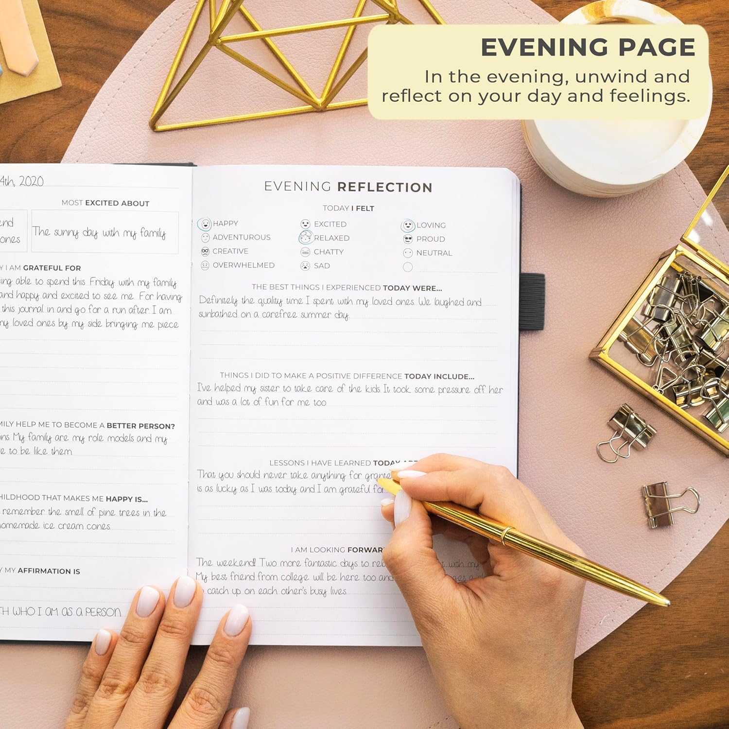 - STIMULATE GROWTH WITH DAILY REFLECTION: Reflect on your day and foster self-awareness with evening reflection pages and regular weekly exercises.