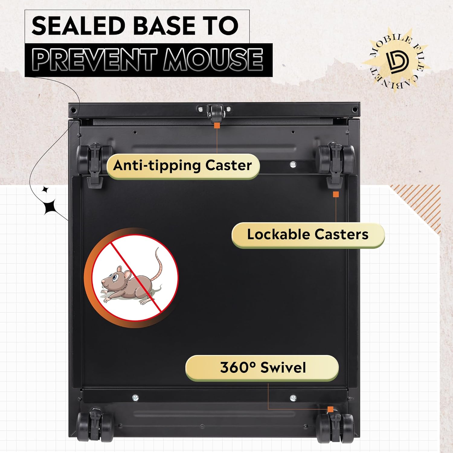 - Sturdy and Durable Cold-Rolled Steel Construction: The office cabinet is made of cold-rolled steel with a maximum weight capacity of 330 pounds. The rolling filing cabinet also can be used as a printer stand.