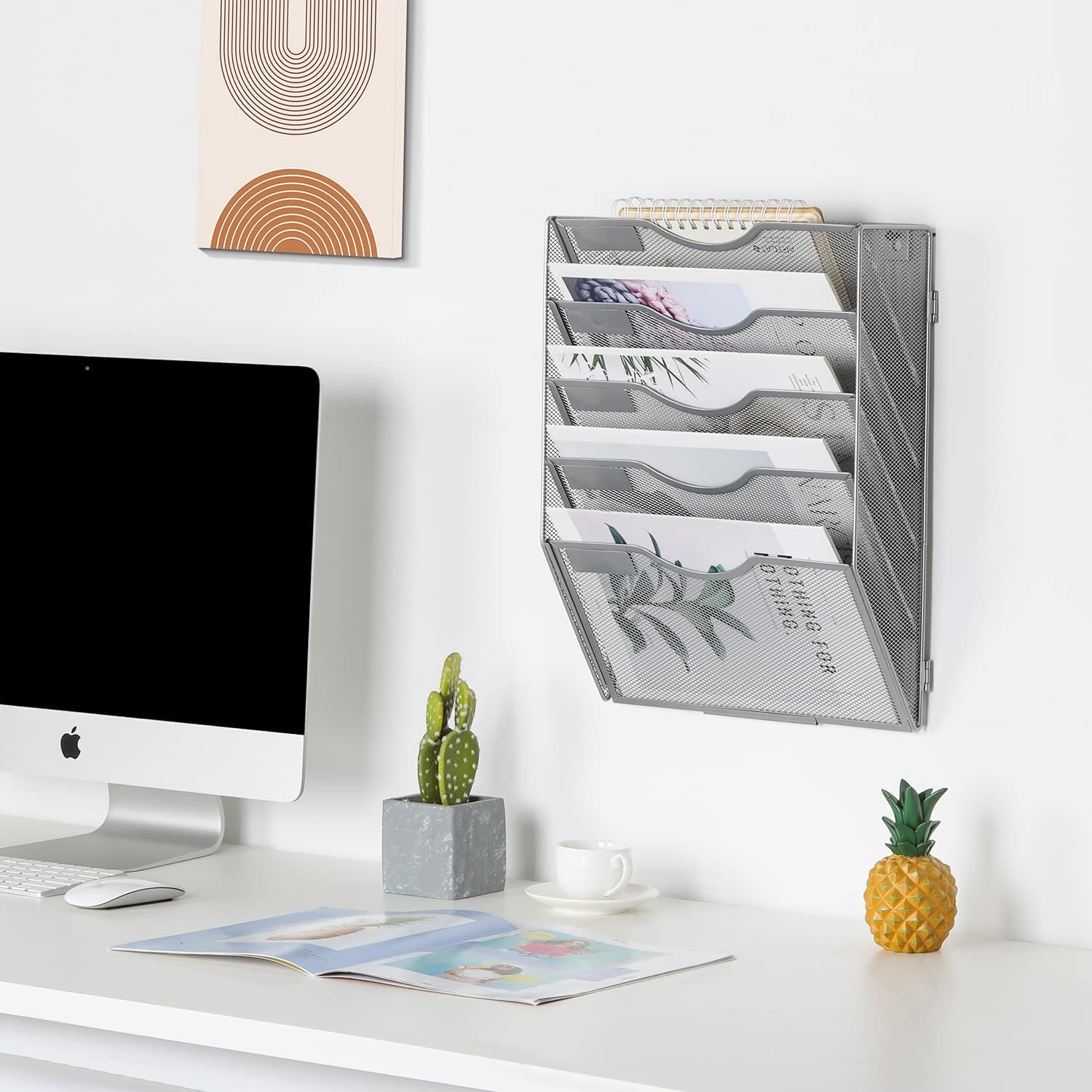 - Space Saving: 5 tier metal wall file organizer comes with mounting screws that can be easily mounted on the wall. Use your home or office space more efficiently by keeping your files organized and off the desk and workspace.