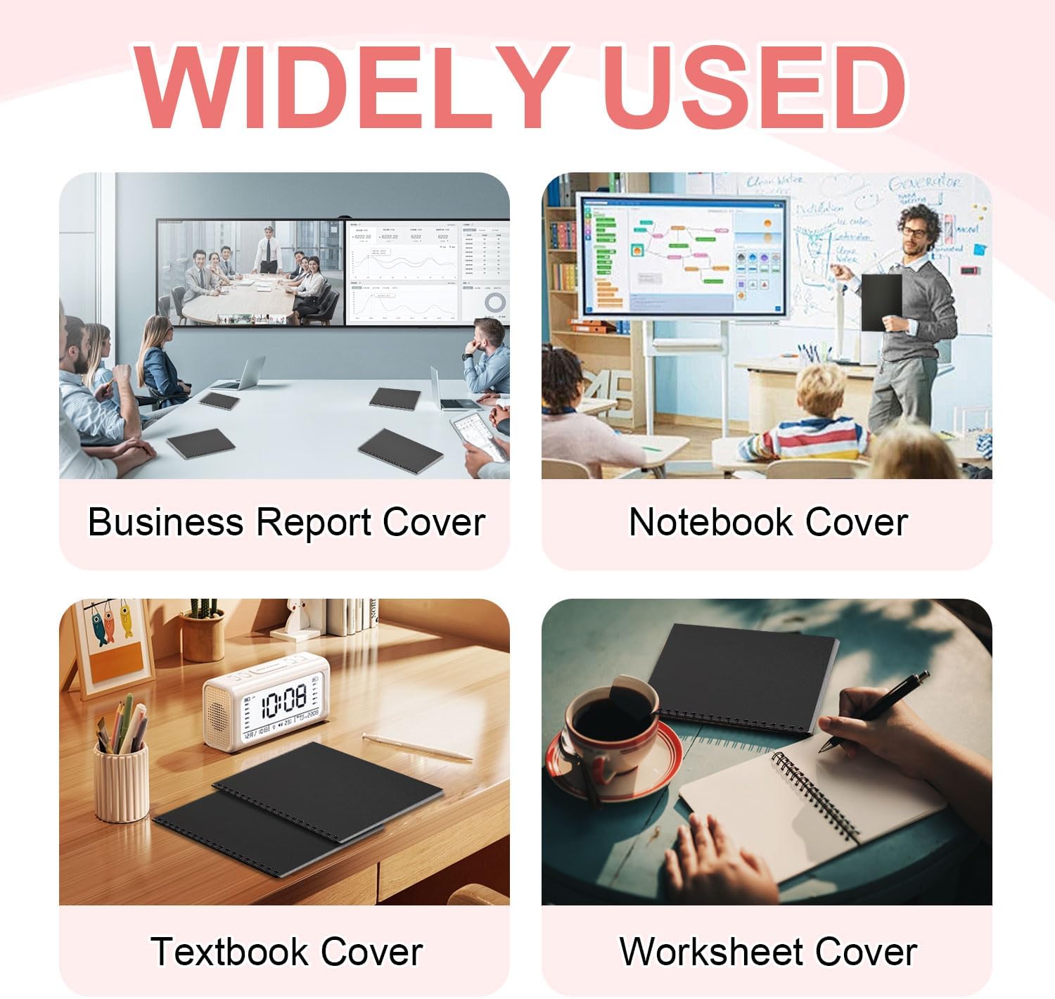 - Size: Sand-Textured Poly cover is 8-1/2 x 11 Inches, 100 pack, Black, Square corners