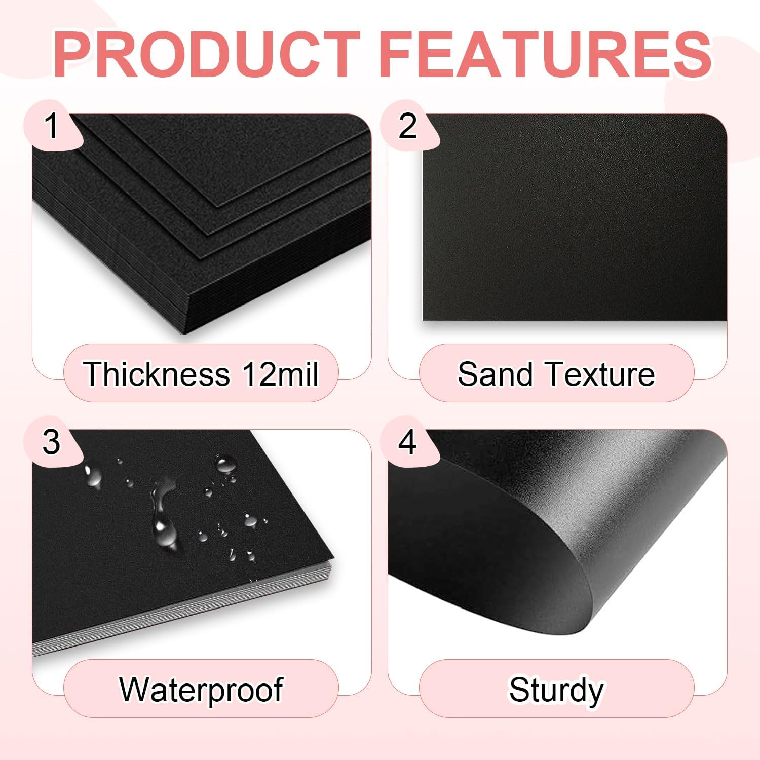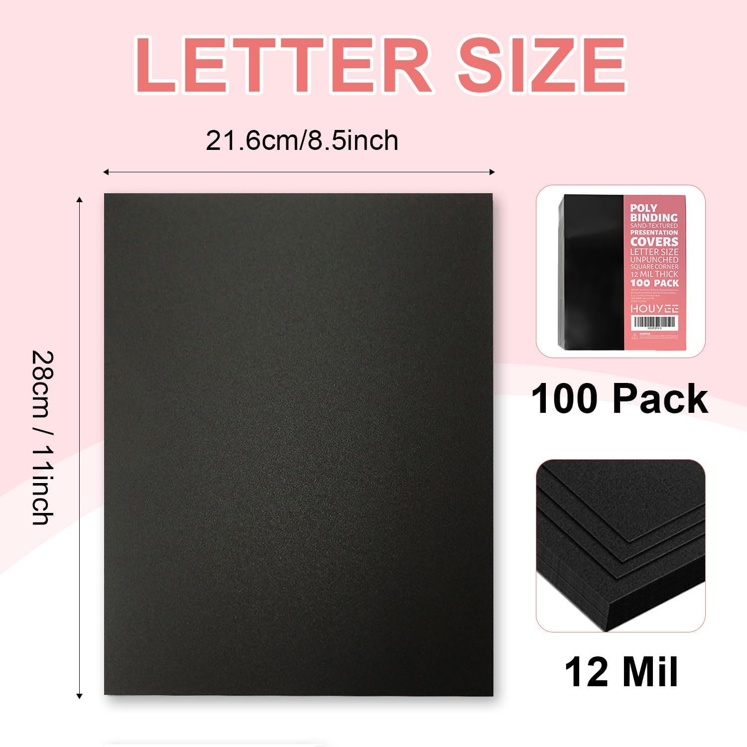 HOUYEE 100 Pack 12 Mil Poly Binding Covers,Sand Texture Binding Presentation Covers,8.5x11 Inches,Letter Size,Black,Square Corners,Un-Punched