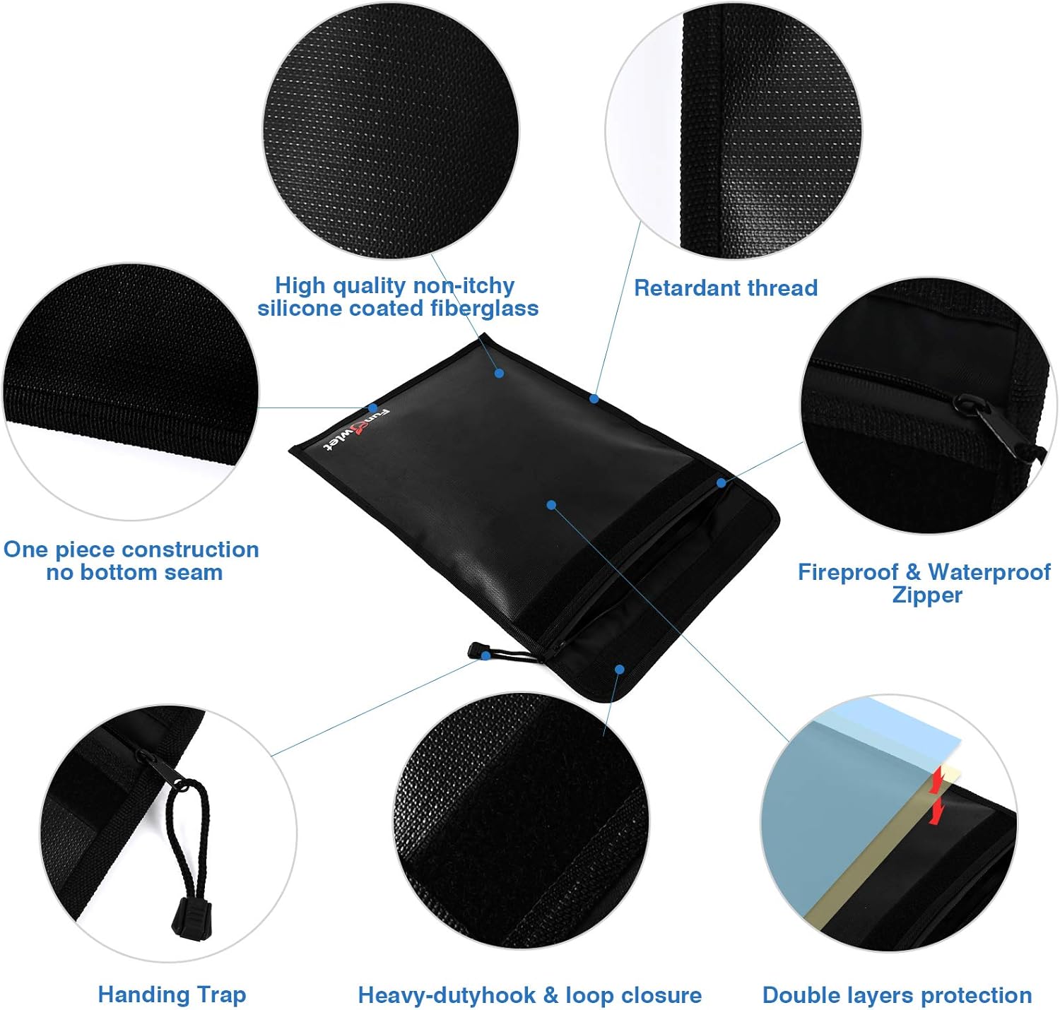 - Fire and Water Resistant: The fireproof document pouches are made from high quality, non-itchy silicone-coated fiberglass that can withstand temperatures up to 4200β. They protect your documents and valuables from fire damage and are not only fire-resistant but also highly water-resistant, safeguarding your items if they get wet. These bags are suitable for both indoor and outdoor use.