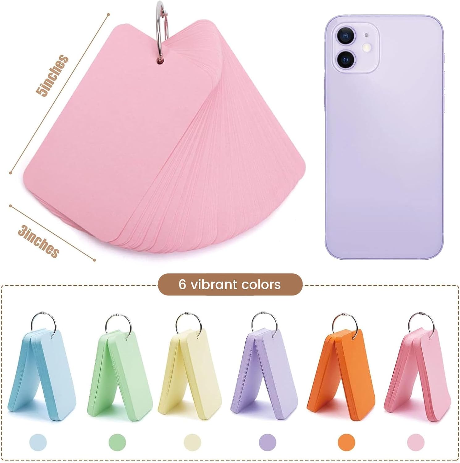 - Color-Coded Organization: With 6 vibrant colors to choose from, these flash cards help you organize different subjects or themes (e.g., Red for Math, Blue for Science, Green for History). This color-coded system brings structure to your studies, making learning more efficient and organized